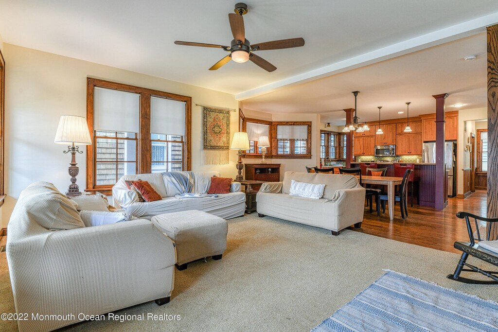 SUMMER WEEKLY RENTAL- Newly Built Just a Few Years Ago,this Charming 3BR/2BA-Sleeps 6 (w/Bonus Sleeping Loft on 3rd Level - To Sleep 8) is Just 2 Blocks to the Beach,Steps to OG Activities & Asbury Park. Sunlit Open Floor Plan w/HDWD Floors Features Spacious LR & DR Leading to Updated Kitchen w/SS Appliances & Full BA. 2nd Fl Discover 3 Large BRs & Full BA. The Primary BR Showcases Queen Bed & Beautiful Covered Balcony. The Other 2 BR's Each Have 2 Twins. 3rd Fl Space is Perfect to Work or Exercise & Offers 2 Twin Beds. Great Outdoor Space w/Open Porch,Shower & Space To Store Bikes. Washer & Dryer,Central Air,WIFI Inc. 4 BEACH BADGES Included. NO PETS,NO SMOKING. $300 Cleaning $1000 Security. September Monthly Rental For 12,000. Winter Rental Begins October 2026 @2775 Mo+Utilities