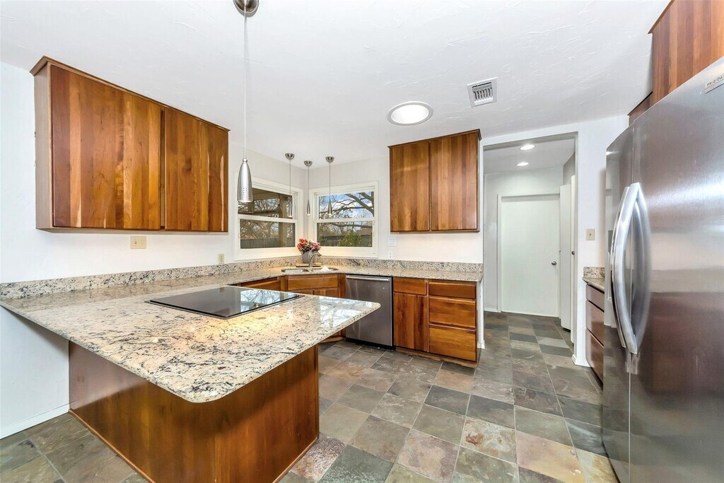 Welcome to Mont Del Estates, where classic charm meets modern comfort. This beautifully updated single-story traditional home offers 2,582 square feet of well-designed living space on a peaceful, tree-lined interior lot. Step inside and discover an ADA-friendly layout that blends accessibility with style. The spacious living room, anchored by a wood-burning fireplace, flows seamlessly into a bright dining area and an updated kitchen featuring stainless appliances—including refrigerator, washer, and dryer. Outdoors, your private saltwater pool awaits, surrounded by lush, mature landscaping that creates a true backyard oasis. Enjoy quiet mornings or sunset evenings from the screened porch, perfect for entertaining or unwinding year-round. Pet lovers will appreciate the dedicated “cat closet”—a clever, built-in space designed with furry family members in mind. With recent updates to major systems including HVAC, hot water heater, and laundry appliances, this home combines timeless style with modern peace of mind. Located within Fort Worth ISD—Ridglea Hills Elementary, Monnig Middle, and Arlington Heights High—this property offers both comfort and convenience, just minutes from Benbrook Lake, parks, and shopping.