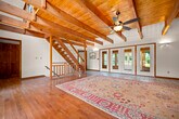 Custom-Built Executive Home for Rent with Pastoral & Mountain Views – Horse Shoe, NC This stately, custom-built home offers refined living in a peaceful Horse Shoe setting, featuring pastoral and mountain views and a thoughtfully designed floor plan. The home has been updated with a renovated kitchen and bathrooms and features hardwood floors throughout much of the main living areas. A welcoming sunroom that provides additional flexible living space and natural light. The main level includes a spacious dining room suitable for formal or casual gatherings, along with an open living area highlighted by a soaring cathedral ceiling and a striking stone fireplace. The primary suite is generously sized and includes double vanities and a well-appointed layout designed for comfort and privacy. Additional living spaces include a loft area overlooking the main living room and a dedicated office space, offering flexibility for work-from-home or additional use. The home also features a lower-level garage, an unfinished basement with a half bathroom that provides ample storage or utility space, and an expansive deck ideal for outdoor living and enjoying the surrounding views. A circular driveway offers convenient access and additional parking. Lawn maintenance is included for ease of upkeep. This property is well-suited for an executive-style rental, offering space, privacy, and quality finishes while remaining accessible to nearby amenities, dining, and major roadways.