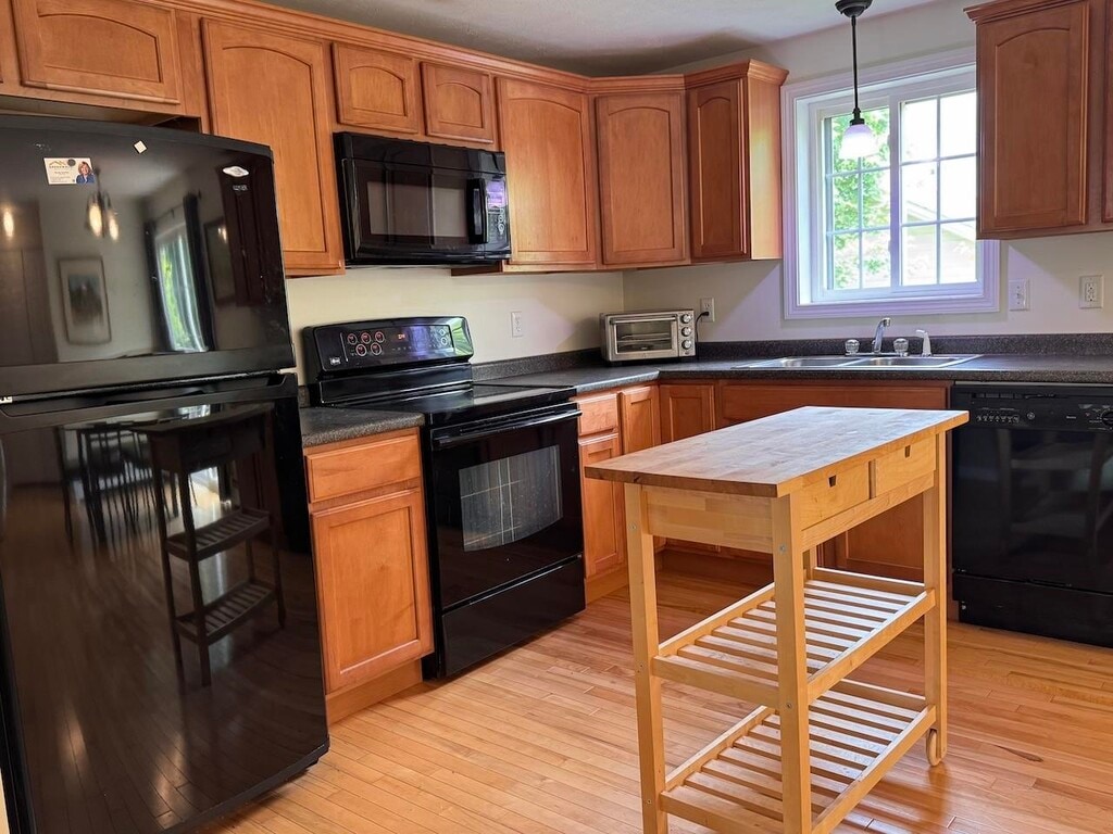 Three bedrooms with one on the first floor with walk in closet and two on the second floor, one with attic storage and both with oversized closet. Two Bathrooms, 3/4 on the first floor and full on the second. Open kitchen, dining and living room with a portable island. Laundry on the first floor and access to the basement for storage only. One car garage access with some storage. Level back yard with back deck off the dining area, sloping front yard with an entry porch to the front door with paved driveway. The owner has one bay that he uses for storage along with the basement. It is the tenants responsibility to run and empty as needed the dehumidifier year round in the basement. Credit, back ground, proof of income, and application required to apply. Small fee for this process. MLS# 5068245