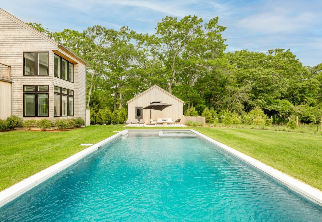 Crafted and constructed to meet the highest contemporary standards, this remarkable residence spans over 7,000 square feet, providing the perfect setting for an exceptional summer experience. The airy and luminous open floor plan encompasses a chef's kitchen, living area, dining space, den, home office, four fireplaces, and six en-suite bedrooms. The lower level boasts a gym with a Finnleo indoor sauna, a spacious media room, a wine cellar, and a guest suite. Adding to the convenience is the detached garage equipped with a Tesla charging station. Step outside to a heated, saltwater gunite pool and spa, an outdoor shower, three patios, and two upper decks, creating an ideal outdoor entertainment space. Located within 2 miles of ocean beaches and East Hampton Village, revel in breathtaking sunrises and sunsets while surrounded by 9 acres of protected reserve. This property offers the epitome of modern luxury living. [[Rental Registration # 22-1029]] EH RR #: 24-1,164 Rental Terms: Other / Short Term - Year Round: $795,000 Memorial Day - Labor Day: $495,000 July: $215,000 June: $100,000 July - Labor Day: $450,000 May: $75,000 August - Labor Day: $250,000 June/July: $275,000