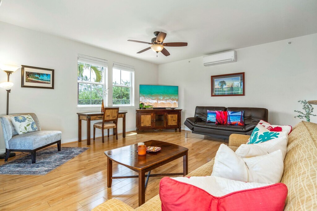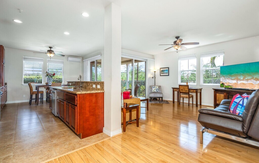 Welcome home to 15-103 Kai Ani Village, a beautiful ground level townhome, just one block away from the beach! This modern, open concept home is located in the heart of Central Kihei. The community's infinity saltwater pool and jacuzzi on site are surrounded by cabanas and chaise lounges for you to enjoy and relax in. This beautiful fully furnished home is available now, approximately 1,300 sq. ft., 2 bedroom, 2.5 bath home is located in a highly sought after condo complex in central Kihei. Tasteful island style furnishings decorate the home and you'll also enjoy modern upgrades including Luxury Vinyl plank flooring, 4 split AC units, and privacy light blocking blinds. A guest half bathroom in the hallway. The open kitchen is equipped with stainless steel appliances including a refrigerator, microwave, dishwasher, and stove. Granite countertops with rich wood cabinetry make the space a cook's dream! The spacious primary bedroom with a CalKing size bed and a walk in closet, an ensuite bathroom has granite countertops and a walk in shower. The second bedroom has a luxurious Queen size bed. The second bathroom off the bedroom hallway offers granite countertops and bathtub/shower combo. Equipped with split AC throughout the home, you'll stay cool and comfy on sunny days. The full-sized washer and dryer are conveniently located inside the home. Two assigned parking spaces. Outside, there is a desirable shaded lanai with a private gate access, a community garden, gazebo, and barbecue facilities located beside the pool. This is a must-see condo ready to move in and start enjoying, the community has easy access to gyms, shopping, and numerous restaurants. This home has everything you need to enjoy the south Maui lifestyle. Set up your showing appointment today! Available May or June 2026, for a Six Month Lease to start $3,900.00 + $183.77 GET 4.712% = $4,083.77 Security deposit: $3,900.00 Tenant Responsible for: Electric, Internet and GE Tax Owner Responsible for: Refuse, Water, Sewer, and AC service No Smoking and No Pets Showings by Appointment Only Please Email or call