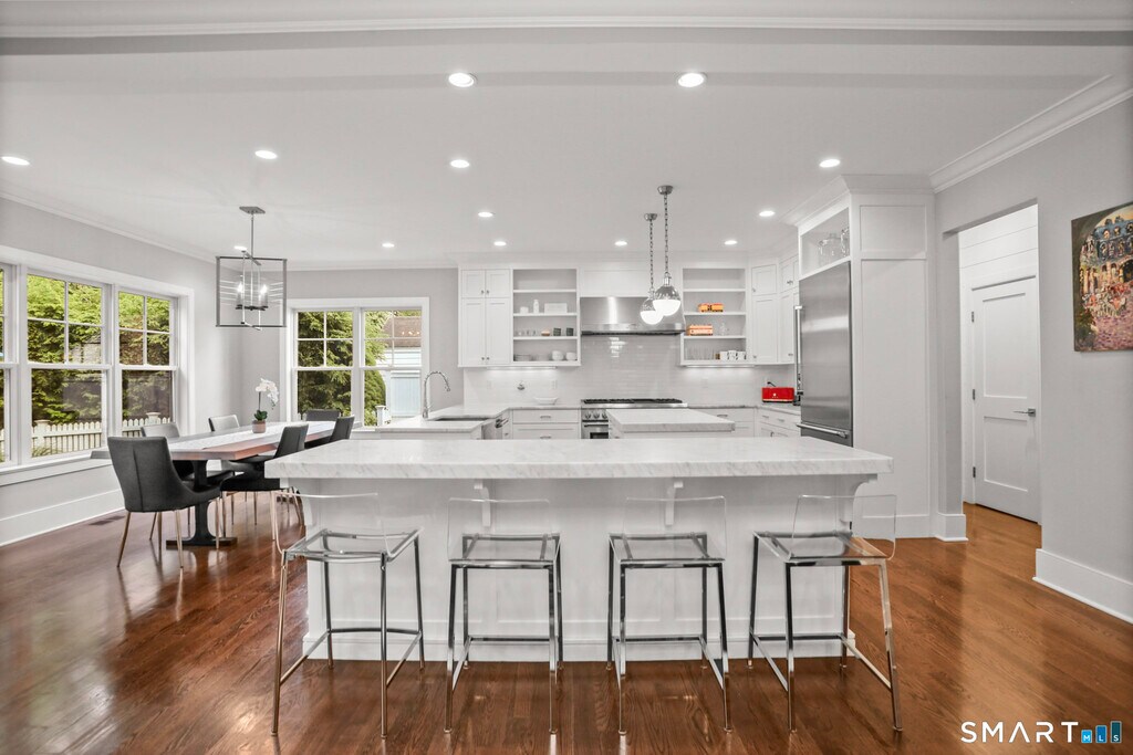 Call for Availability - Beautifully maintained and move-in ready, this exceptional rental is located on a peaceful private lane. Built in 2014, the home offers a versatile floor plan spanning four finished levels, providing abundant space for everyday living, working from home, and entertaining. The bright, open-concept chef's kitchen serves as the centerpiece of the home and features two islands-perfect for casual dining, meal preparation, and gathering with friends and family. Sunlight fills the main living areas, creating a warm and inviting atmosphere. Upstairs, the second floor includes a generous primary suite along with three additional bedrooms. One bedroom is privately situated in its own wing with a full bath, offering excellent flexibility for guests, an in-law arrangement, or a secondary living space. The third floor features an ideal work-from-home setup with an office (or additional bedroom), a comfortable sitting area, and a full bath. The fully finished lower level offers even more space, including a large playroom or media room plus a dedicated gym area. Offered fully furnished, this home provides an effortless lifestyle-simply unpack and enjoy everything Westport has to offer, from top-rated schools and a vibrant downtown to beautiful beaches and coastal living. Long term tenant preferred. MLS# 24158909