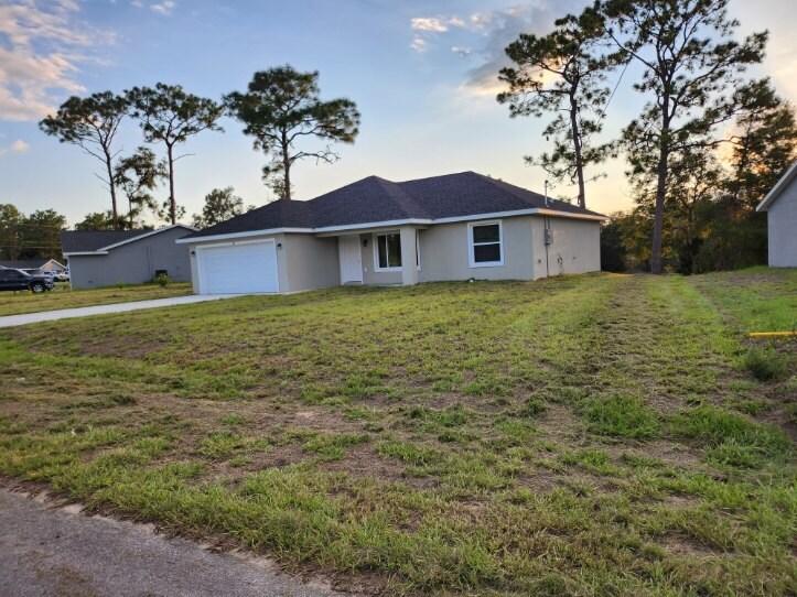 Welcome to your new home in the scenic town of Ocklawaha! This 3 bed 2 bath 2 car garage is located directly in front of a breath taking pond allowing you to enjoy the wildlife in your own backyard! Upon walking in you will notice the seamless kitchen and living room combo. The kitchen is complete with white shaker cabinets, all stainless steel appliances including refrigerator, dishwasher, microwave, and glass top oven, with plenty of storage space for all your kitchen gadgets. The master bedroom is perfectly designed with your needs in mind. Enjoy a walk in shower with his and hers vanity, and a spacious walk in closet. This home also has two guest bedrooms with their own personal closets and guest bath. The entire home has luxury vinyl flooring making cleaning a breeze. The home is located on its own septic and well lowering utility costs. Come tour your new home today!