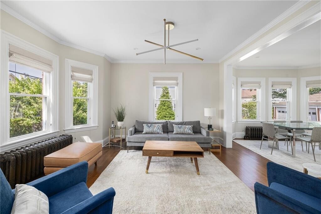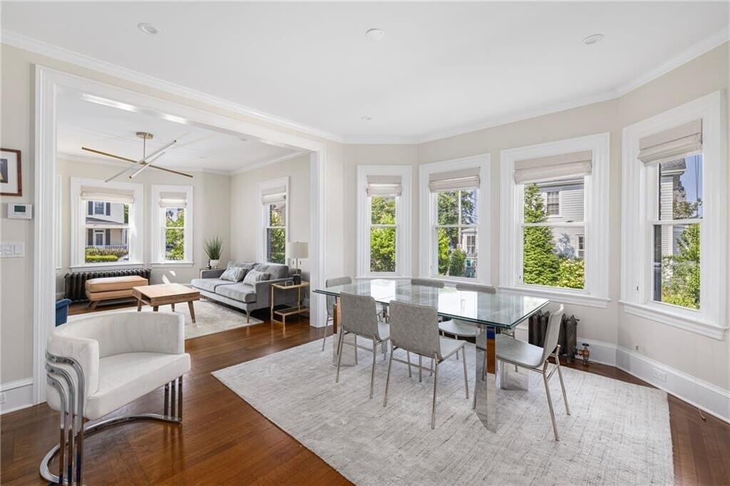 Rent includes WIFI,basic cable,water/sewer with a $150/monthly cap,lawn care and select snow removal. Available September 1,2026 to June 20,2027. A stately turn of the century brick Colonial remodeled to reflect modern finishes and amenities. The welcoming enclosed front porch is drenched in sunshine and cozy furniture; the perfect setting for a morning cup of coffee. Fresh clean sight lines abound from the gracious foyer,large living room,and dual functioning dining room & sitting area with dry bar. Conveniently located powder room is around the bend from the large kitchen with prep island and breakfast room. Floor to ceiling windows adorn this area creating lovely natural light along with sliding doors for direct access to the private yard that recently has been hardscaped. Fully equipped kitchen with high end appliances makes dining easy & fun. A finished lower level with dedicated laundry area,full bathroom,and family room (or 4th bedroom with daybed) complete with a kitchenette and flat TV screen is the ultimate hang out space. Please reference floor plans. The primary bedroom has a walk-in closet and en-suite with a King bed. The other two bedrooms comprise two twin beds and a Queen bed while sharing the third full bathroom. Central AC on the second floor & mini-splits on the first floor,and off-street parking for 3 vehicles tandem (no garage access). Walkable to all things Newport! Strong credit,references,exit cleaning fee,and renter's insurance required. MLS ID 1401511