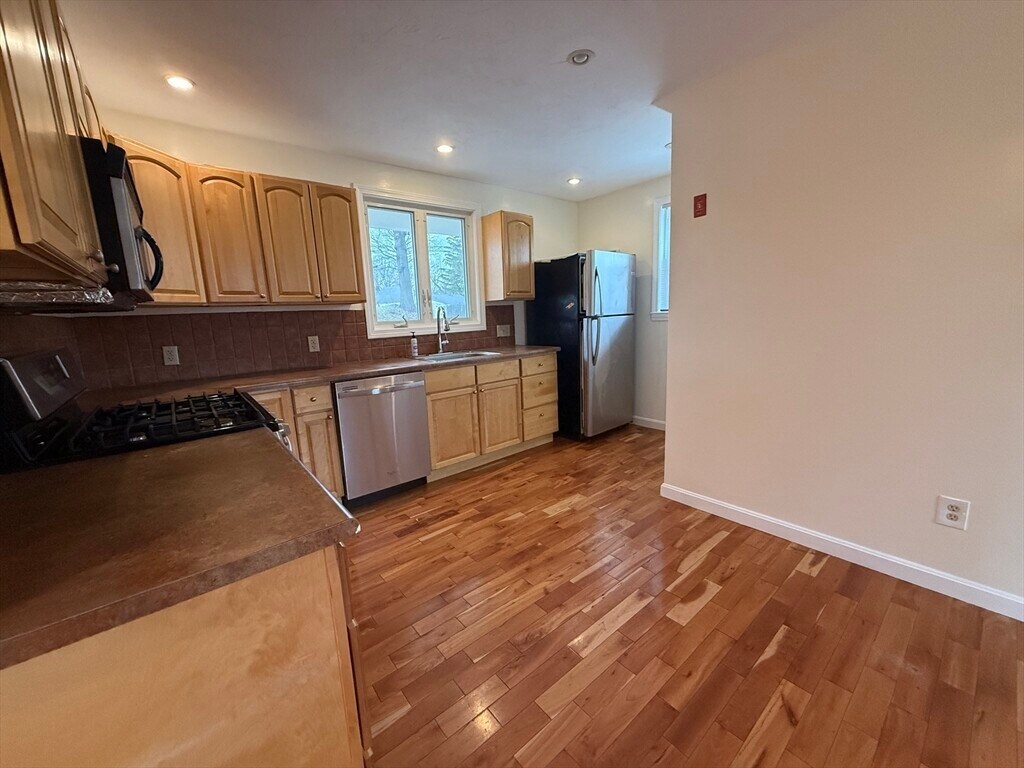 Bright single-family rental with scenic views of Lake Quinsigamond. The open floor plan creates a comfortable flow,complemented by maple hardwood floors that add warmth throughout. The kitchen features stainless steel appliances,a ceramic tile backsplash,and ample workspace for everyday cooking. Enjoy a gas stove and cozy fireplace,along with a welcoming farmer’s porch. The primary bedroom includes cathedral ceilings and an en-suite bath. Additional features include central A/C,recessed lighting,and an irrigation system for easy outdoor maintenance. MLS# 73501031