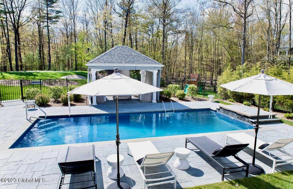 Exceptional showcase home available for the month of July or the month of August for $40k. Enjoy your 2026 summer vacation in true luxury - the backyard paradise has an inground heated salt water pool,par 3 golf,firepit,cabana with tv,deck with awning,outdoor grill,a great setup for summertime entertaining. Gourmet kitchen,3 bedrooms upstairs,1 bedroom on first floor,plus an office with a murphy bed on first floor - plenty of room for all! The finished basement has a bar and wine cellar,fitness area and theater in the rec room. Located just 10 minutes to the track & downtown Saratoga Springs,convenient to all! MLS ID 202612195