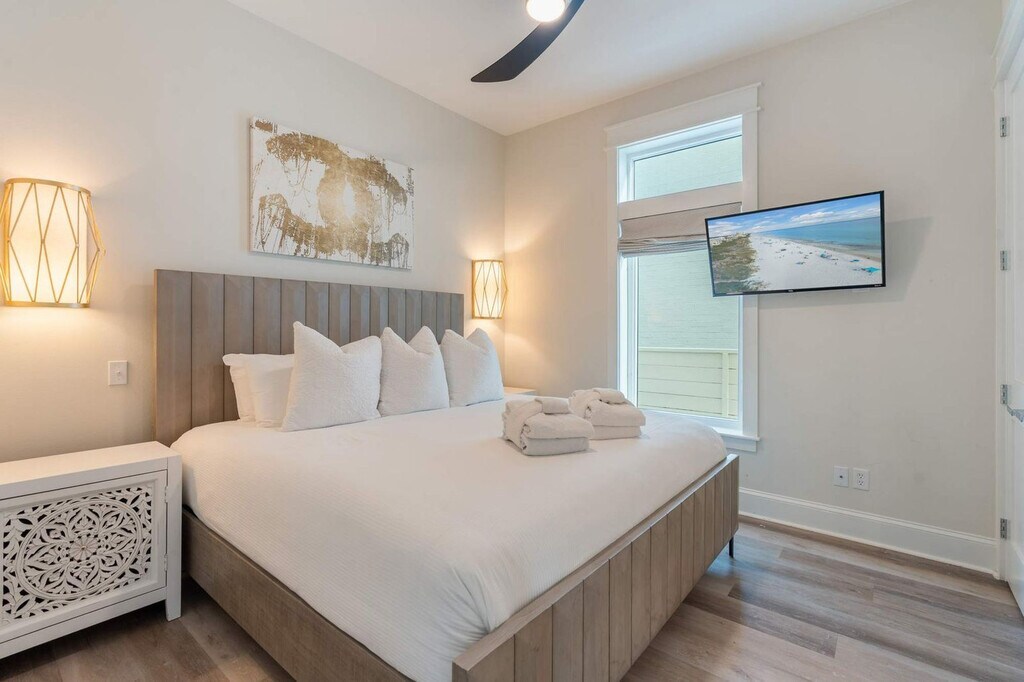 The advertised rate of $18,664/month is the lowest available price, based on a 30 day(s) stay with a move-in date of October 19, 2026. Rates vary depending on the duration of stay, season, and other parameters. For exact pricing and additional pricing components, please visit our website and enter your desired move-in and move-out dates. The rate is applicable when billed upfront; it can be higher if billed in multiple payments. Feel at home in Bikinis & Martinis, a professionally designed 5-bedroom, 4-bath home just 33 yards from Seagrove Beach's sugar-white sand. This four-story home offers Gulf views from every level. This luxury retreat offers 2,999 square feet of beautifully appointed interiors, featuring an open-concept kitchen, dining area, and family lounge. The chef’s kitchen is fully stocked with high-end stainless steel appliances, granite countertops, custom tile, and a large island with bar seating for six. Each of the five bedrooms is designed as a personal retreat with soft linens and smart TVs. Enjoy a private pool with a gated patio, grill, and outdoor seating. Also included are 4 adult bikes and a 6-seater golf cart. Pets of any size or breed are welcome with a non-refundable pet fee of $200 per pet. Located in the heart of Seagrove Beach, this home places you in one of the most cherished communities along Florida’s Scenic Highway 30A. Bike the scenic 18-mile Timpoochee Trail, paddle Eastern Lake, explore Deer Lake State Park, and shop local boutiques. Enjoy local dining at Seagrove Village Market Café, Cafe Thirty-A, Old Florida Fish House, and Black Bear Bread Co. Nearby towns like Seaside, Grayton Beach, and Rosemary Beach are just a short ride away. Check-in is at 4:00 PM and check-out is at 10:00 AM. Smoking is not allowed indoors or on balconies. Parking for up to four vehicles is provided; no street parking is allowed. Do not interfere with exterior safety devices, Wi-Fi equipment, pool systems, or the pool alarm which is required by Florida law for guest safety. The primary guest must be at least 21 years old and present during the stay. [SI]