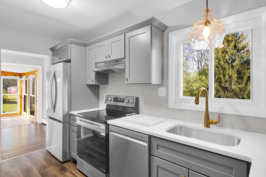 Call for Availability - Beautifully remodeled from top to bottom, this turn-key home offers bright, inviting spaces and a modern layout ideal for today's lifestyle. The main level features a spacious living room with a large picture window and a freshly painted brick fireplace, creating a warm focal point for everyday living. Newly refinished hardwood floors run throughout, complementing the clean, updated interior. The kitchen has been completely transformed with sleek gray cabinetry, quartz countertops, a tile backsplash, stainless steel appliances, and stylish gold accents. Just off the dining area, a sun-filled bonus room with walls of windows brings in views of the backyard and provides the perfect spot for a morning coffee, playroom, or flexible additional living area. A newly finished basement extends the home's usable space, offering an ideal setup for a home office, gym, recreation room, or guest area. Outside, the property continues to impress with a spacious, private backyard-perfect for outdoor entertaining, gardening, or simply unwinding in the quiet setting. Conveniently located near shopping, museums, parks, and golf, this home combines modern updates with an unbeatable location. Completely move-in ready and waiting for its next owner. MLS# 24140811