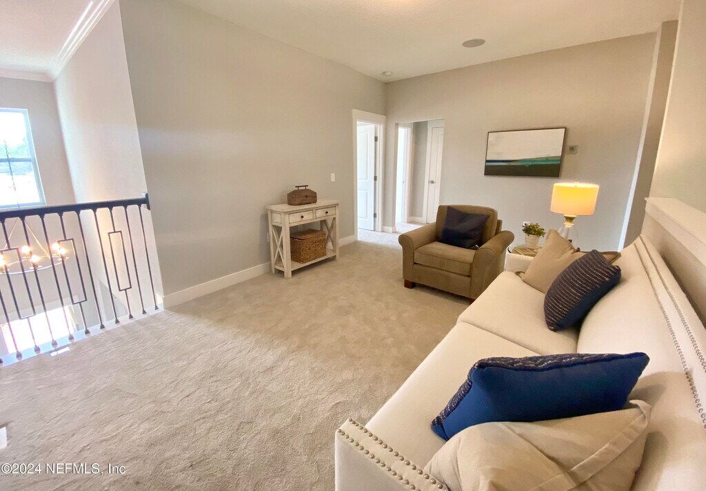 Former Toll Brother's model home in a gated community. Kitchen and Dining look out to lanai with peaceful preserve view. Convenient first-floor Master Bedroom and private Study. Upgraded white cabinetry in Kitchen with beautiful quartz countertops. OAK stairs with open stair railing at first floor lead to second floor featuring 3 spacious bedrooms and welcoming LOFT. Enjoy LESS MAINTENANCE and MORE of the Nocatee Lifestyle! MLS# 2114547