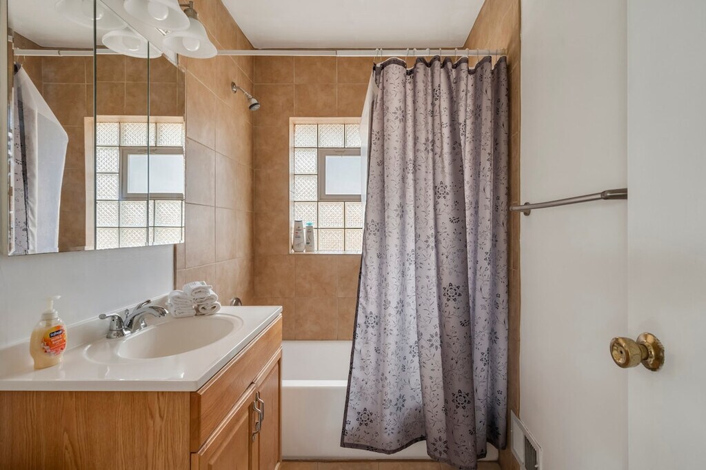 Feel at home in this stunning Westmont apartment, located on the second floor. This cozy space is perfect for groups up to 4. This apartment offers amenities for a relaxing stay, including lightning-fast Wi-Fi and a 75” living room TV with fully loaded entertainment through ROKU (HBO Max, Netflix, Disney Plus, Hulu, and more). The apartment also features a fully stocked kitchen and access to a coin washer and dryer in the building. Two free parking spaces are included. Just steps from the Westmont Metra station, this apartment is conveniently located. The unit is located in the building that is across the train track, so you may hear the train passing by. Please be mindful of your footsteps to avoid disturbing the neighbors downstairs. Check-in and check-out times are flexible. [SI]