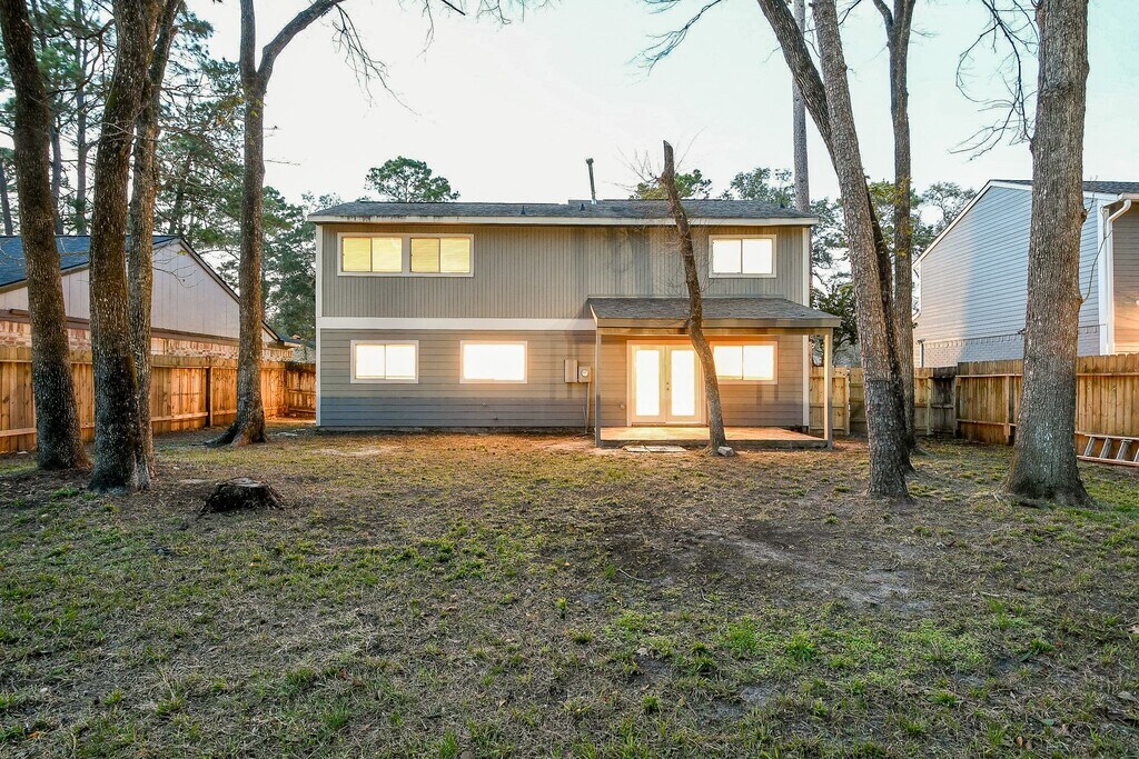 Nestled in the Woodlands area,this 4 bedroom home is move-in ready with fresh paint and updated bathrooms. Enjoy a large fenced backyard,covered porch,and hard surface flooring throughout. The spacious living area boasts high ceilings,while the primary bedroom features a private bathroom. With a downstairs bedroom offering a private entrance,it could make a perfect home office. Located near schools,shopping,major roads,Creekwood Park,and walking trails. Attached 2 car garage with openers. Just a short drive to McCullough Jr High,Glen Loch Elementary,and the Woodlands Mall. MLS# 27799628