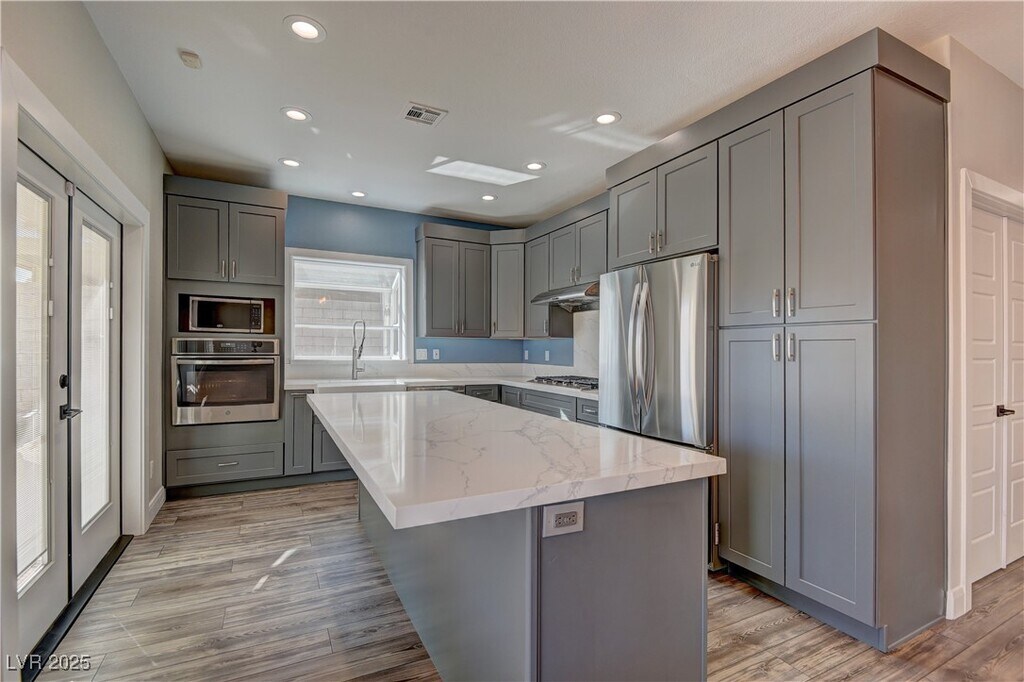 Completely upgraded 4-bedroom home with 3-car garage and bedroom with bath downstairs! Features new luxury vinyl plank flooring, carpet, fresh interior and exterior paint, solid-core doors, and an open living room with soaring ceilings and a custom entertainment niche. The kitchen boasts quartz countertops, custom cabinets, an island with a wine fridge, a breakfast bar, a farm sink, and stainless steel appliances. Spacious primary suite with cathedral ceilings, balcony access, dual sinks, a walk-in closet, and an updated bath. Enjoy a covered patio, RV parking, and sparkling pool. Conveniently located near Sunset Station, shopping, dining, and easy freeway access. Base rent $2,999 plus $65 monthly Resident Benefit Package, total $3,064. Tenant must employ a licensed and insured pool service company and provide monthly proof of paid maintenance. Tenant to set up trash & sewer account and provide proof of payment. Please verify all fees with your agent before applying.