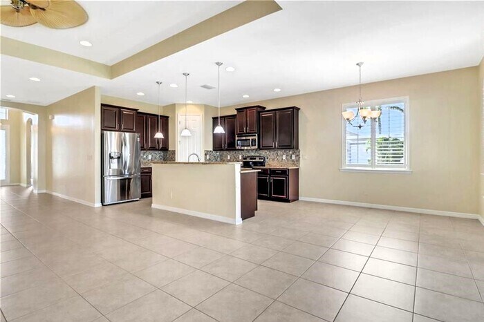 Welcome to your new home in Celebration Cape! This upscale 3-bedroom plus den, 2-bathroom single-family home in Cape Coral is now available. Enjoy a modern kitchen with granite countertops and stainless steel appliances, a dedicated office space, and a 2-car garage. High ceilings with tray designs, plantation shutters add style and comfort. Recently refreshed landscaping with a privacy hedge nestled in small gated community. Contact us to schedule a showing.