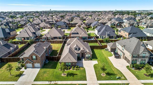 Beautiful and spacious 5-bedroom, 4-bath home located in the highly sought-after Tanners Mill community in Prosper ISD. This well-maintained property features an open-concept floorplan with high ceilings, abundant natural light, and a large living area perfect for entertaining. The gourmet kitchen includes stainless steel appliances, granite countertops, a large island, subway-tile backsplash, gas cooktop, and plenty of cabinet space. The primary suite and a secondary bedroom are conveniently located on the first floor, ideal for guests or multigenerational living. Upstairs you’ll find a generous game room, media room, and three additional bedrooms with ample closet space. Enjoy a spacious backyard with covered patio—perfect for outdoor living. Tanners Mill HOA amenities include community pool, parks, trails, and green spaces. Zoned to top-rated Prosper ISD schools.