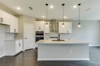 Never lived in home in gated community on a corner lot to let plenty of sun shine in. Showplace of the home is the spacious and open kitchen with gas cooktop, oversized island, brfk bar, and open to the living room. Breakfast area so cozy and handy it becomes a family gathering place. Spacious living room for gracious entertaining. Upstairs game room will be everyone's favorite spot for fun and entertainment. Separate bedroom and full bath down for guests. Larger lot has fully covered patio and still room to play. Community will have playground, fitness center, pool, picnic area, fire pit. HOA and lawn service to be paid by owner. Convenient access to I-35,George Bush, and I-635. lawn service included. NO PETS