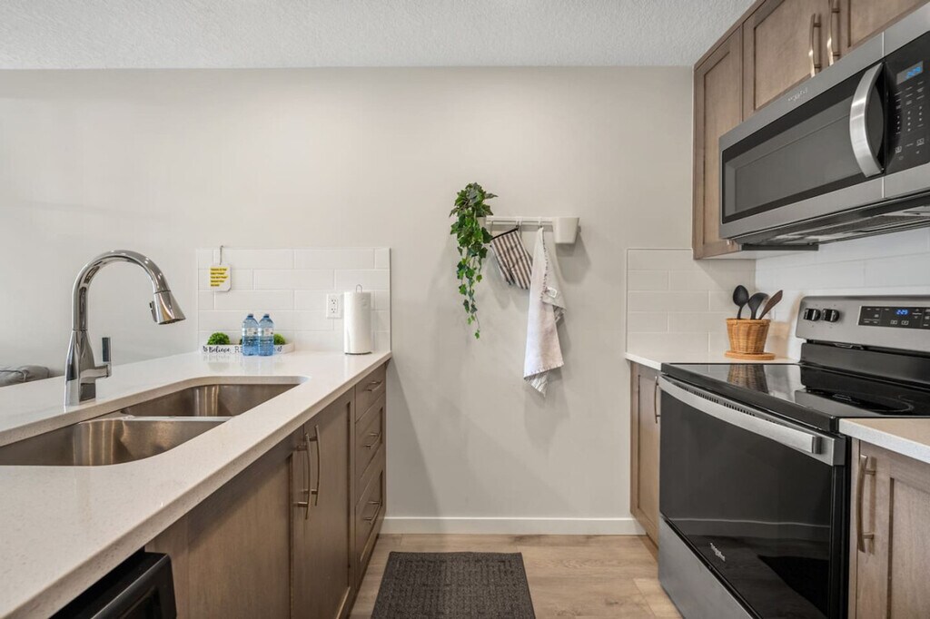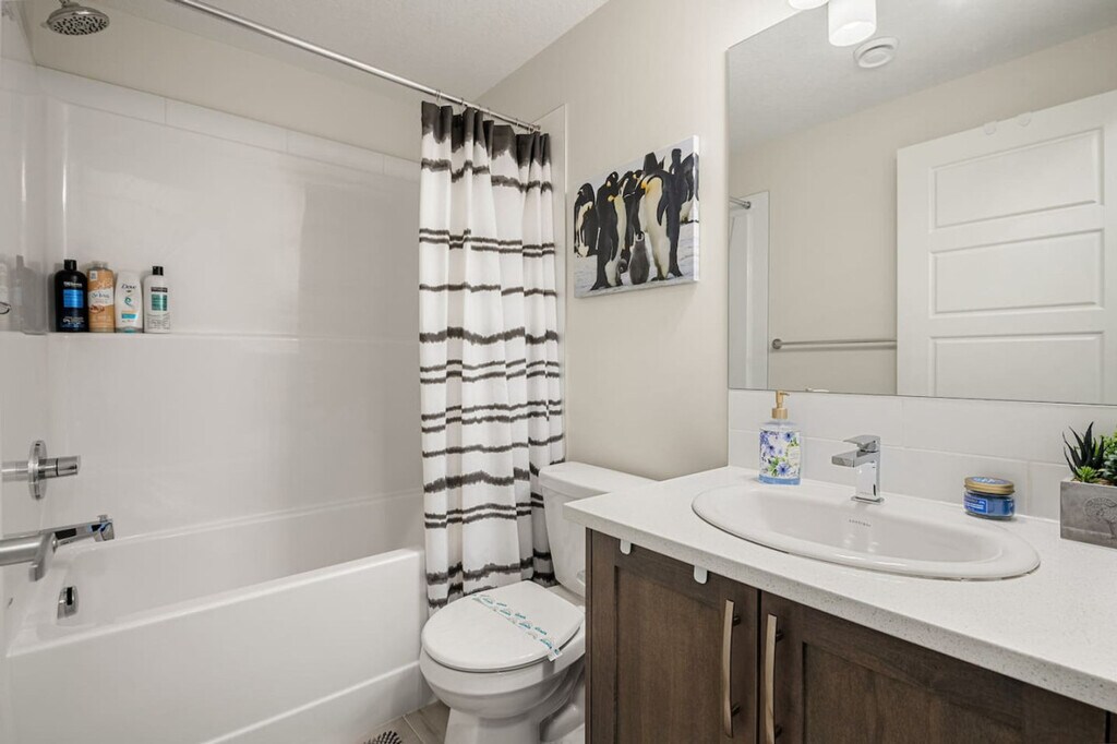 Experience tranquil living in Rocky View with this spacious and scenic apartment, just minutes from the city. Featuring a king-size bed and a queen sofa bed, this home offers a full bathroom and a fully equipped kitchen. Enjoy the convenience of a designated parking stall and the comfort of heating and portable AC, along with a washer and dryer for long-term stays. The apartment boasts a modern and inviting living room with a large sofa bed, a 50” smart TV with Netflix, and high-speed internet. The kitchen is fully equipped with stainless steel and custom appliances, including a 4-burner stove, oven, microwave, refrigerator, freezer, and dishwasher. Complimentary coffee grinds, tea, and water are provided, along with a drip coffee maker and cooking essentials. This pet-friendly apartment welcomes dogs and offers a crib, Pack 'n Play, and high chair for families. A free National Park Pass for Banff is included, and visitor parking and street parking are available. Additional supplies can be provided at an extra cost during your stay. Located in Rockland Park, this growing community offers scenic walking paths and green spaces. While some amenities require a short drive, the area is expanding with new shops and services. Enjoy quick access to major highways, making commutes and getaways to Banff, Kananaskis, and Canmore effortless. Nearby transit options connect you to Calgary’s extensive network, ensuring convenient commuting. The property has a strict no-smoking policy, with a $250 CAD fine for violations. Quiet hours are from 10 pm to 7 am, and there is a noise detector to ensure compliance. No parties, drugs, excessive drinking, or loud music are allowed. Unauthorized late check-out will result in additional fees. The apartment is professionally managed with 24/7 guest support and communication, ensuring a smooth and enjoyable stay. The apartment includes an office desk and chair, making it remote work-friendly with fast Wi-Fi and a comfortable set-up for productivity.