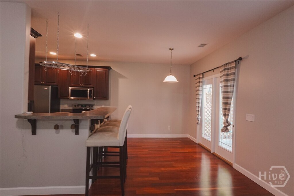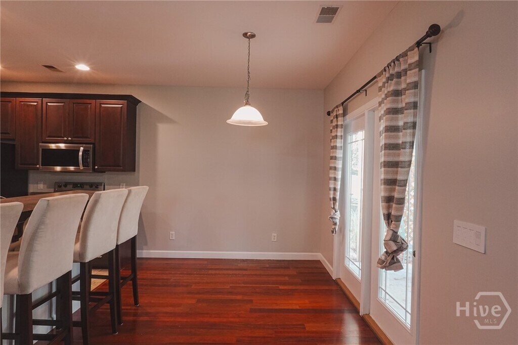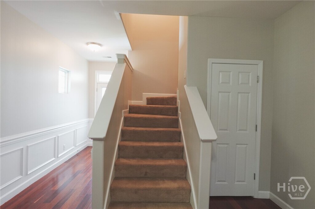 Beautiful wood floors showcase the ground floor of this well maintained home. Large kitchen with lots of counter space,stainless appliances. Backyard w/shade trees that backs up to a private wooded area. Home offers a master suite with sitting room & an office area. Huge 2nd bedroom as large as many master suites. Bedrooms have a Jack and Jill bath. Home is located in the Main Street Subdivision which offers walking trails,parks,swimming pool,playground and very close to schools,5 minutes to I-95,25 minutes to Ft. Stewart. Pets allowed upon owner approval.