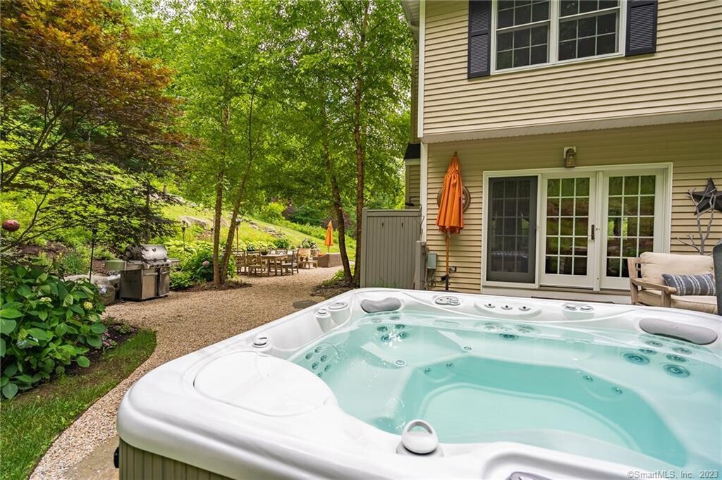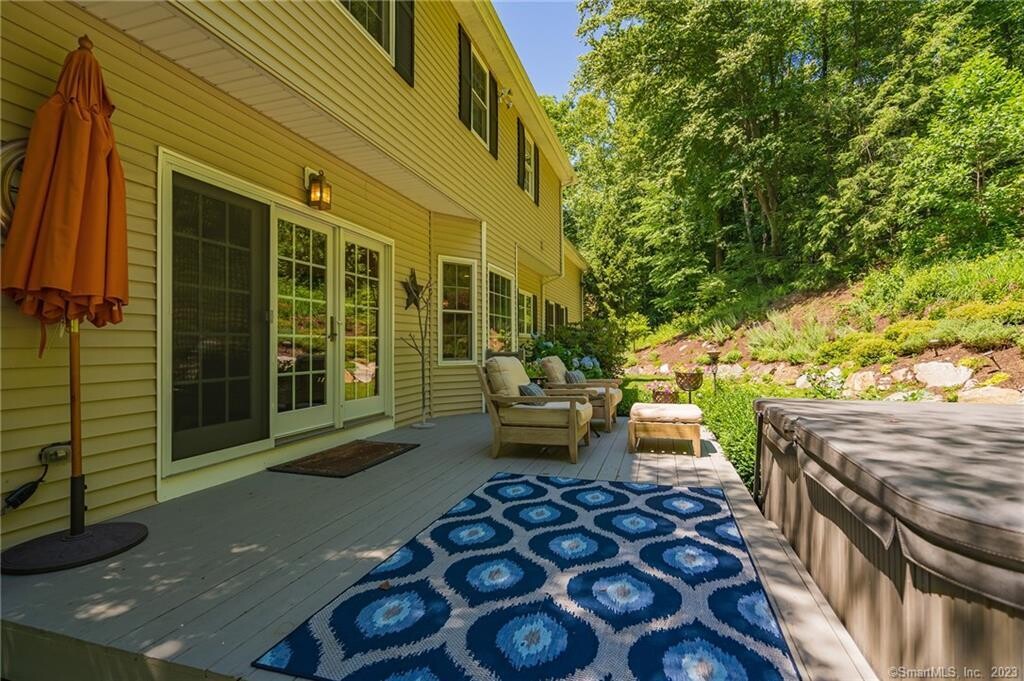Call for Availability - There is no better place to spend your time in Litchfield County than the town of Woodbury. Honored as Connecticut's most charming town" you have access to award-winning dining (indoor & outdoor), local farms & CSA's, natural food stores, spa's, vineyards & breweries, antique shops, golf courses, bike trails, lakes & hiking - all minutes away from this centrally located property. This home's long curving drive pulls you into quiet country seclusion. On a west-facing hill, overlooking its 12 acres, the home and property offer the utmost in privacy. You can enjoy long, sunset views from two levels of furnished terraces. Carefully and thoughtfully designed as a countryside retreat, the landscaped gardens and outdoor living space offer endless enjoyment, privacy, and serenity. Walk the private, wood-chipped walking paths. Take a refreshing outdoor shower and rejuvenate under the stars, soaking in the outdoor spa. The interior is tastefully decorated with clean, sophisticated furnishings, in neutral tones. Abundant natural light energizes the home and the clean hardwood cohesively joins each brightly lit space. The finished lower level is large enough to provide space for exercise, studies, or socializing. The property is within walking distance to the 2100-acres of hiking trails at Whittemore Sanctuary, minutes to several private lake clubs for swimming and kayaking (kayaks included with the house), as well as a private pool & tennis club." MLS# 24167061