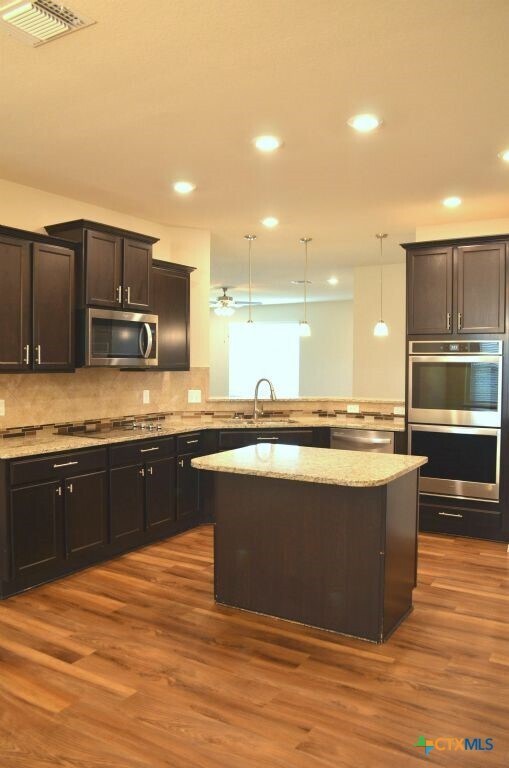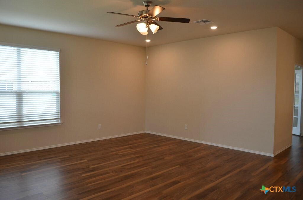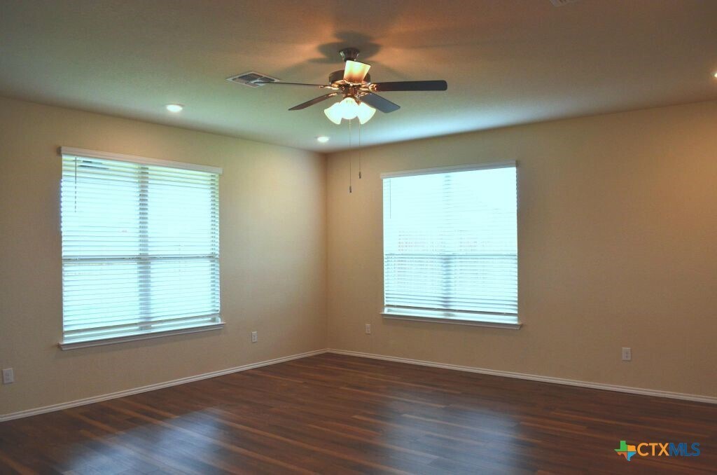 This spacious 5-bedroom 4-bathroom home is located in Harker Heights on a corner lot! As you enter you are welcomed with vinyl flooring throughout the living,dining,kitchens and bathrooms. The living room is generously sized and has a ceiling fan for keeping cool. The kitchen boasts stainless steel appliances,double oven,built in stove top,granite counter tops and a pantry for ample storage. The upstairs loft has carpet throughout and the large windows provide tons of natural light. All of the secondary bedrooms are amply-sized and include walk-in closets. The master bedroom is truly a gem with its size and tray ceiling giving it a great sense of openness. The master bathroom showcases dual vanity sinks,and separate tub and shower. Other amenities include a 2-car garage,wood privacy fence and a cover back patio with a ceiling fan!