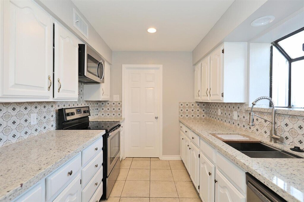 Beautiful, newly remodeled town home in a gated community with pool. The 1st floor features an open concept living and dining room, kitchen, laundry room, 1/2 bath. 2nd floor features 3 bedrooms, 2 full bathrooms, balcony and skylight. The whole condo has been upgraded. Countertops are granite and floors are tile throughout. Lease includes refrigerator, range, microwave, washer, and dryer.