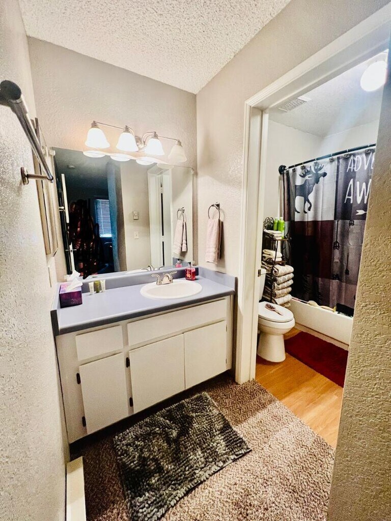 Pristine adorable upgraded fully FURNISHED 2 bedroom,2 bath great location and views in The Pines covered patio with table and storage. Great room was sitting bar light and bright. Electric fireplace with blower. White kitchen with new stainless steel appliance package. Split bedrooms master has en suite step in closet -TV. Location close to everything summitt healthcare,restaurants,shopping,nightlife,parks,golf courses,lakes the great outdoors. 2 bedroom has a nice desk.