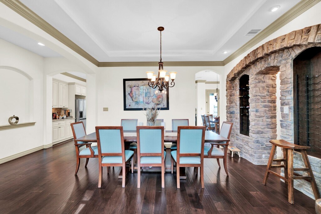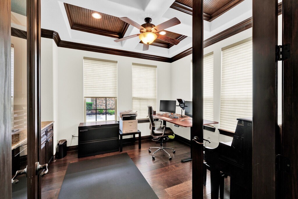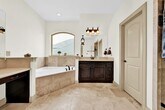 Welcome to this stunning 2-story Mediterranean-style home,a former Dream Tech Homes model featuring 2 luxurious primary suites and a thoughtfully designed open-concept floor plan. The gourmet kitchen is a chef’s dream,featuring an oversized center island,granite countertops,stainless steel appliances,and ample cabinet space. The living room boasts soaring vaulted ceilings with wood beams and a striking stone fireplace,perfect for cozy gatherings. Enjoy elegant entertaining in the formal dining room,complete with a butler’s pantry and a temperature-controlled wine cellar. Each bedroom features an en-suite bathroom adorned with travertine finishes and a generously sized walk-in closet. Step outside to your large covered patio with a built-in summer kitchen—perfect for year-round entertaining. Additional upgrades include Hunter Douglas window shades,3M energy-efficient window film,and designer touches throughout. Enjoy resort-style amenities,including a pool & a gym. MLS# 24500063