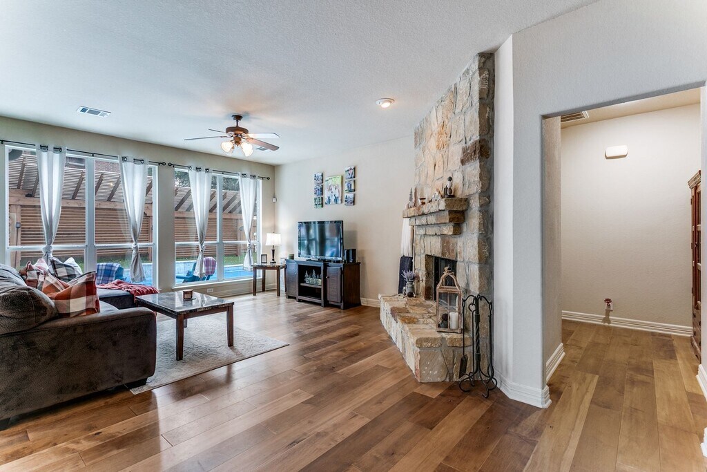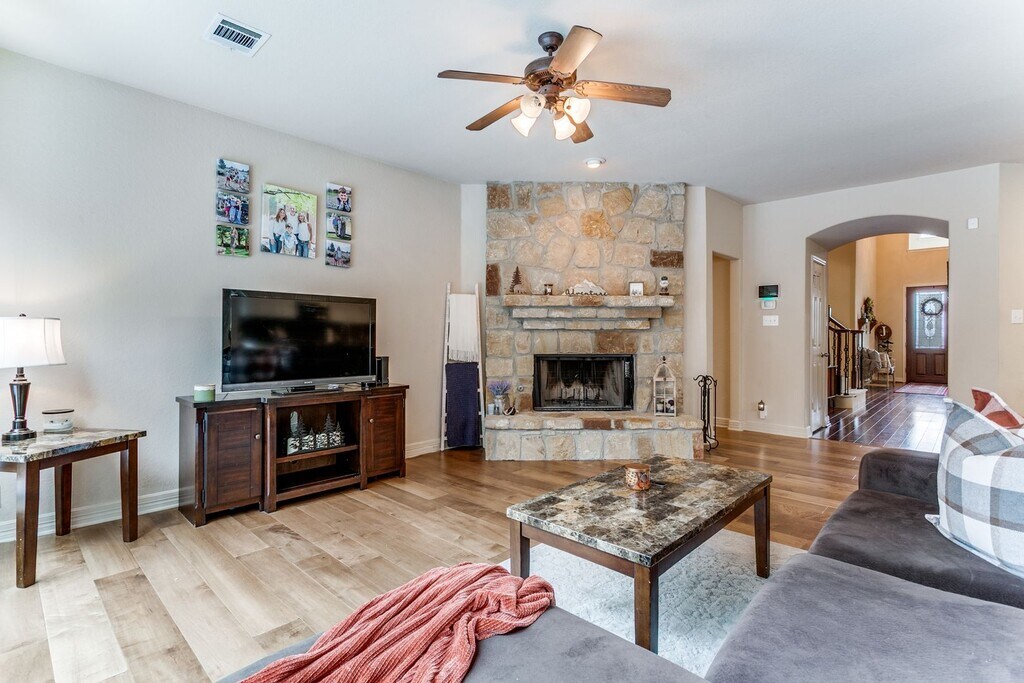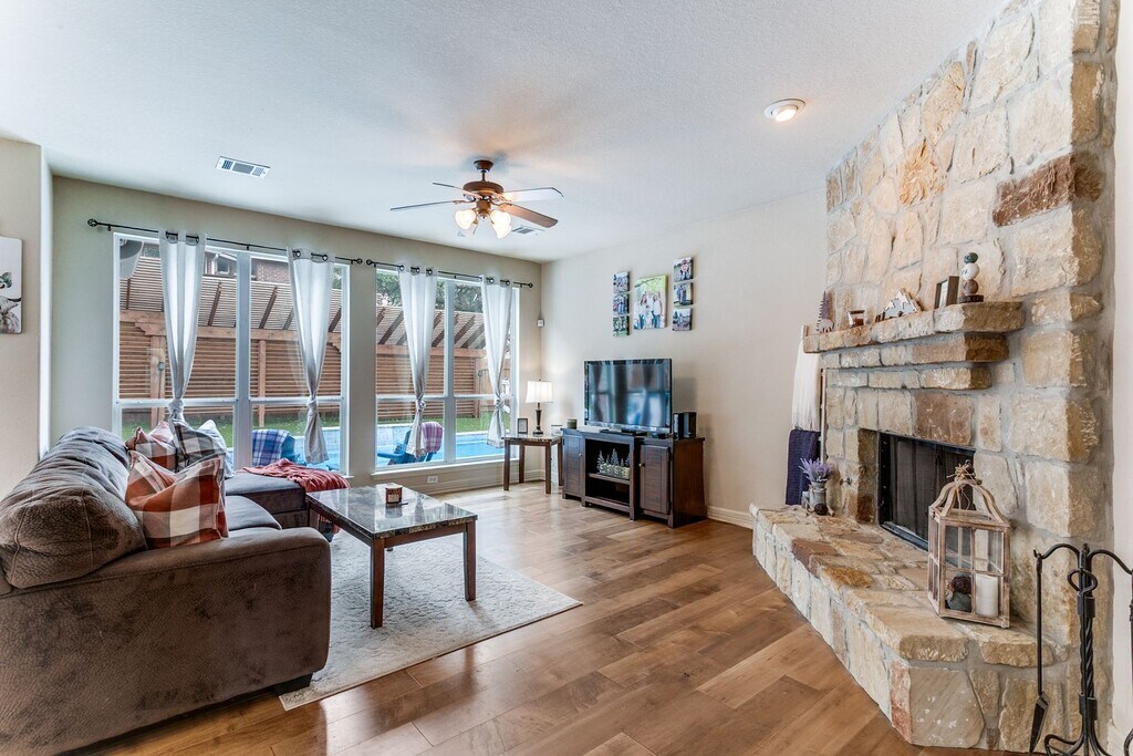 Gorgeous 4-Bedroom, 3.5-Bathroom Home with Sparkling Pool & Spa in Highly-Desirable, Gated Community of Belterra! Great Location Near Hwy-281 & Bulverde, Minutes to Major Employers, Entertainment & Restaurants, Schools, & More. Handsome Curb Appeal with Brick & Stone-Accented Exterior, Inviting Covered Front Entry. Enter to Foyer with Soaring Ceiling with Formal Living & Dining Room, Rich Hardwood Flooring, & Neutral Paint Colors. Family Room Features Beautiful Stone Fireplace Open to Gourmet Island Kitchen with Granite Countertops & Stainless Steel Appliances Included. Breakfast Area with Huge Windows Overlooks Private Backyard. Half-Bathroom on First Floor for Guests & Entertaining. Spacious Primary Suite Downstairs with Oversized Windows & Great Natural Light, Full Bathroom with Dual Vanities, Walk-In Closet, & Separate Garden Tub & Shower. Stairs Lead to Second Level with AWESOME Features & Living Space. Large Landing Could Serve as Exercise or Entertainment Space, Built-In Shelving & Desk Area Along Hallway, Perfect for Home Office, Planning Area, or Homework Station! Dedicated Media Room is a Perfect Destination for Movie Night or Favorite Shows. 3 Nicely-Sized Secondary Bedrooms & 2 Full Bathrooms, One Ensuite & One Jack & Jill Configuration. Laundry Room Adjacent to Garage with Great Storage Space and Washer/Dryer Included. Show-Stopping Backyard with Pool, Spa, Covered Patio with Built-In Grill & TV, Privacy Trellis, & Artificial Turf, Pool Service Included in Rent. Large, 2-Car Attached Garage with Opener & Great Storage Space. Pets Case-by-Case, Subject to Landlord Approval. Highly Desirable Comal ISD Schools!