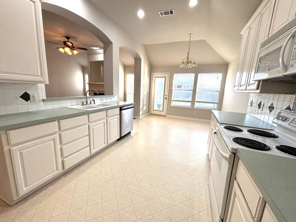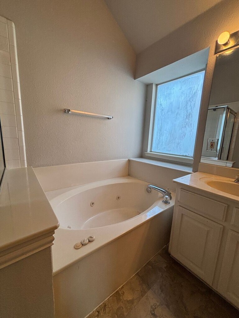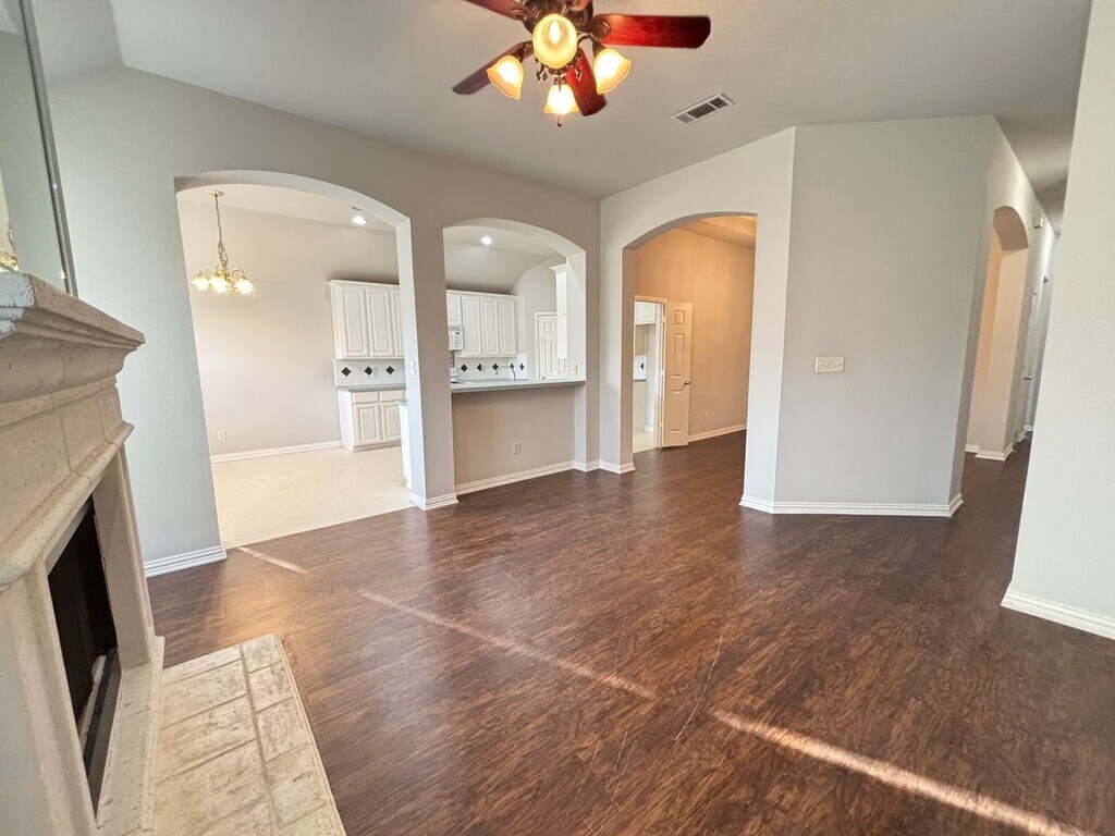 Beautiful 4 bedroom and 3 bath home. Master bedroom with master bathroom en-suite, jetted tub in master bath, his/hers sinks in master bath, large walk in master closet, washroom, kitchen open to living room. Three additional bedrooms and full bath on other side of house. Centrally located with easy access to Rayzor Ranch, I-35, and Loop 288!