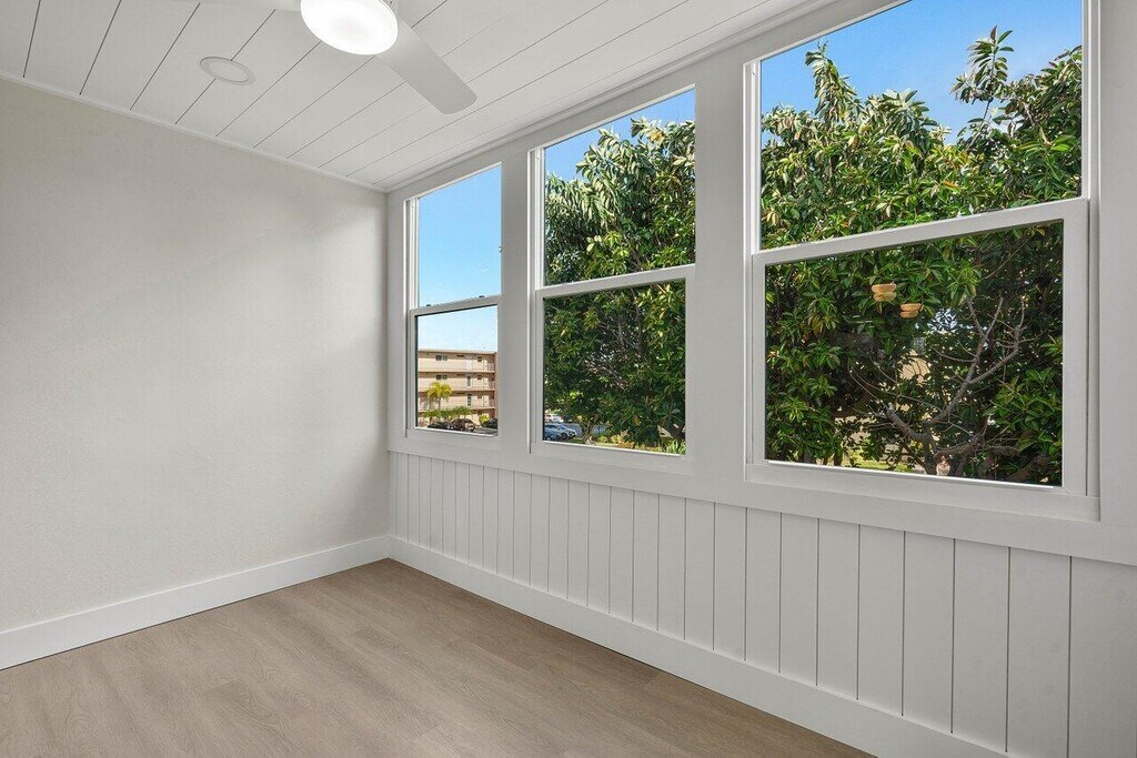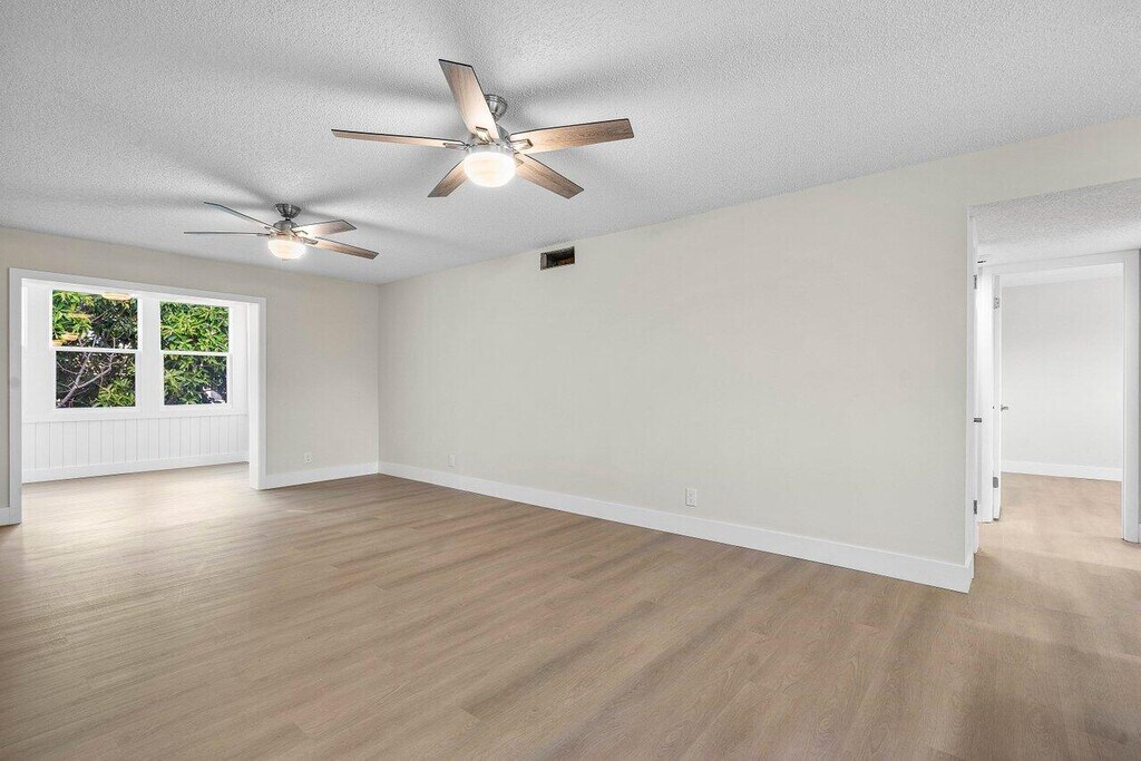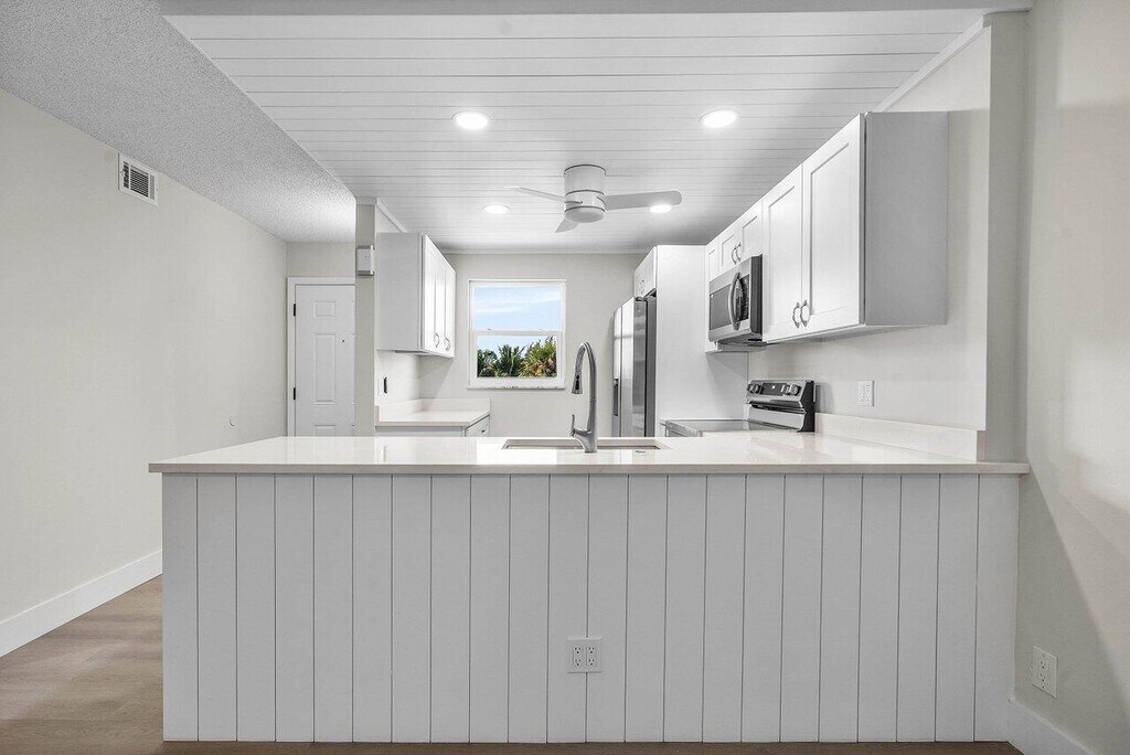 Completely renovated 2 bedroom/2 bathroom unit in Village Royale on the Green. Walking into this incredibly light and bright unit, you'll be greeted by a fully renovated, open kitchen which includes quartz countertops and brand new stainless steel appliances. Unit boasts brand new vinyl flooring throughout. Both bathrooms fully renovated. BRAND NEW COMPLETE IMPACT WINDOWS. Come see this unit today, it wont last long!