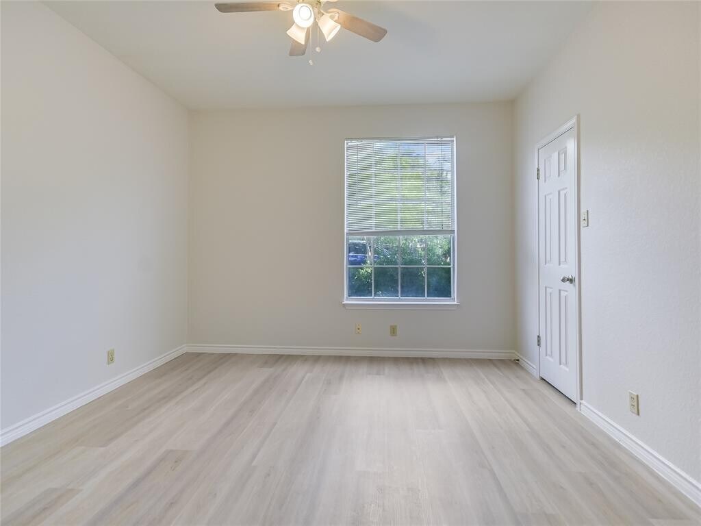 Remodeled duplex with open floor plan with 1 car detached garage. Large private back yard. High ceilings. Both roomy bedrooms have walk in closets. Remodeled kitchen opens to living and dining. New hard flooring throughout. Utility room. Private drive and secluded rear entrance. Perfect location, right off of Slaughter Ln. One of South Austin's most popular rental areas, close to South Park Meadows, schools & entertainment.
