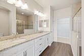 Welcome to this well-kept 3-bedroom,2-bath half duplex located in the desirable Loren Cove community. This home offers a functional layout,modern finishes,and plenty of room to enjoy both inside and out. The main living areas feature durable wood-style tile flooring,while all bedrooms include brand new carpet for added comfort. The kitchen is bright and inviting,complete with white cabinetry,granite countertops,and a large pantry offering excellent storage space. Designed with a split floor plan,the home provides privacy between the primary suite and guest bedrooms. The two secondary bedrooms share a hall bathroom,while the primary suite includes a spacious walk-in closet and a private bathroom with a large walk-in shower. One of the standout features is the oversized backyard,paired with a large covered lanai--perfect for relaxing,entertaining,or enjoying the Florida weather year-round. Additional features include a 2-car garage with plenty of space for parking MLS # 1073212