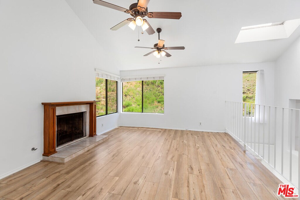 Beautiful 3-bedroom, 2-bathroom end unit townhome, in the highly desirable Alizia Canyon community in Calabasas. This internally located unit offers a great open floorplan with tons of natural light, vaulted ceilings, both living and family rooms, skylights, sliding glass doors, and outdoor space. An open entry welcomes you into a spacious living room overlooking the front patio. The spacious mid-level den features a cozy fireplace and sliding doors to a balcony with beautiful canyon views. A spacious kitchen boasts a greenhouse window that overlooks the lush hillside, ample cabinetry, and adjacent dining area. One bedroom and bathroom are also located downstairs. Upstairs, there are two additional well sized bedrooms that share a bathroom. Unit also includes newly installed HVAC and heat pump and an attached 2-car garage. Amenities include a pool, spa, tennis courts, and paths. Short drive into Calabasas or head to the inviting beaches of Malibu! Located in the award-winning Las Virgenes school district. MLS# 26669069