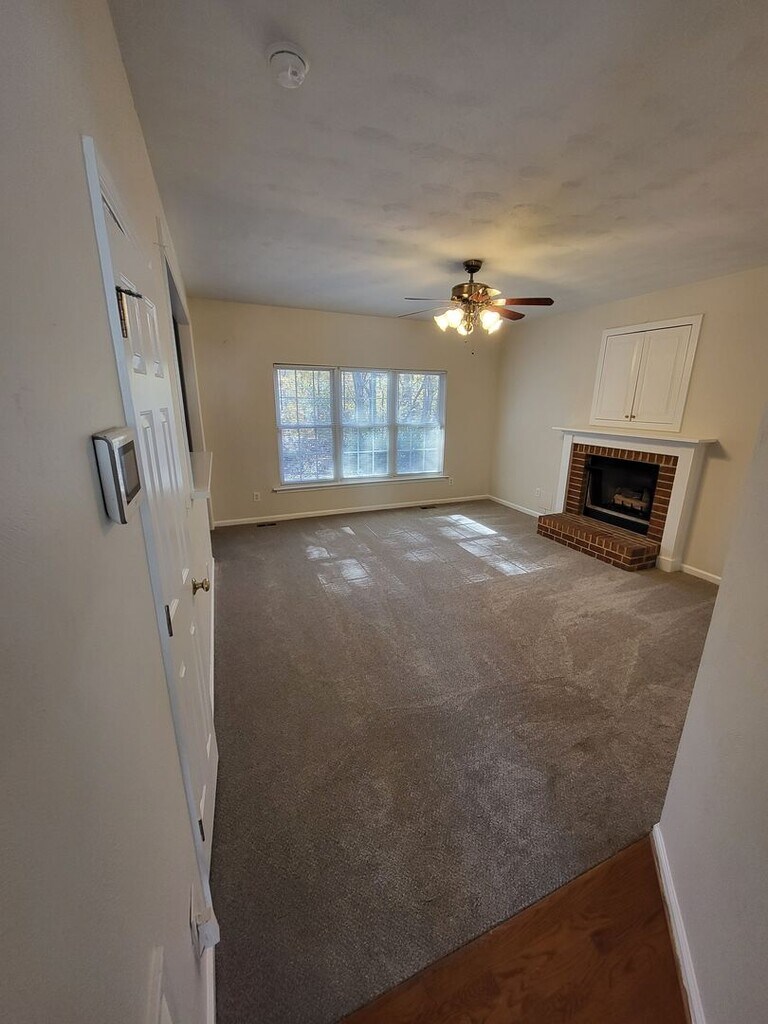 Fantastic home with fresh paint and new carpet throughout, tucked away on a cul-de-sac in the woods of Sawyer's Mill. Desirable schools. Huge 2 car garage. Nice yard with screened in porch. Large kitchen with island and eating area. Formal living & dining rooms and a den with gas fireplace. Pet's considered with additional deposit (refundable) and $25/month pet rent. Please drive by first then call for showing. Application fee = $50 per person (18 & older). Apply online at