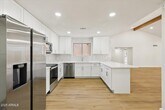 Located in a 55+ community-must be age 40 to apply. This one level has been completely renovated -ready to movein! Open Kitchen with quartz countertops,new range-dishwasher-refrigerator. Unique walk-in pantry and access to storage room in the 2 car garage. Main bathroom has a tile floor and shower with new vanities .Large master bedroom with 2 closets and access to screened AZ room. Ensuite guest bedroom/bath. New vinyl flooring throughout with FP in living room. All new lighting,new interior /exterior paint and newer AC with economical solar panels on roof. Private oversized lot with fenced backyard and covered side patio area. Located in Sun Lakes Cottonwood with private restaurant/clubhouse,pools,spa,golf,tennis and pickleball. Enjoy this active adult community.12 month lease req