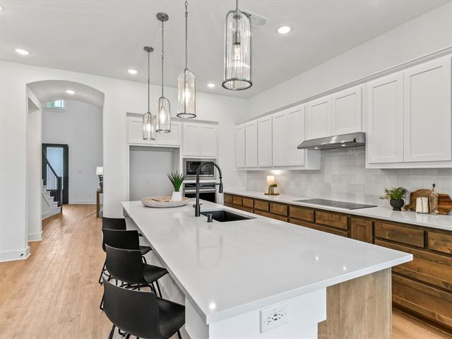 Stunning Highland Home in Pecan Square – 5 Beds, 5 Baths, Full of Upgrades! This gorgeous 5BR, 5BA Highland Home in the award-winning Pecan Square community offers the perfect blend of luxury, comfort, and versatility — ideal for entertaining, multi-generational living, or working from home. The first-floor primary suite features a spacious bedroom, spa-like bath with soaking tub, separate shower, and a large walk-in closet. A split floor plan mother-in-law suite is also located on the main level, offering comfort and convenience for extended stays or live-in family. The bright, open layout is filled with natural sunlight, enhanced by upgraded zebra blinds for added privacy and light control. The chef’s kitchen is loaded with upgrades, including abundant cabinet space, custom pull-out bins in drawers, decorative lighting and a stylish coffee or cocktail bar nook — perfect for morning lattes or evening happy hours. Upstairs, you’ll find an additional living space ideal for a game room or casual entertaining, plus three bedrooms, each with its own ensuite bathroom. A dedicated media room, complete with a hidden media closet to keep cords and wires out of sight, makes every movie night a breeze. Step out through sliding glass doors to a covered patio and enjoy a private backyard, perfect for outdoor dining, entertaining, or relaxing in your own space. The oversized garage easily accommodates Texas-sized vehicles and additional storage needs as well! Beyond the home, Pecan Square’s HOA amenities elevate everyday living with: multiple resort-style pools, dog parks, fitness center, Greeting House communal office space, sports courts, pickleball, playgrounds, picnic areas, rock climbing wall, and a full monthly calendar of events including music festivals and seasonal activities. This community offers everything you need for an active, social, and fun lifestyle.