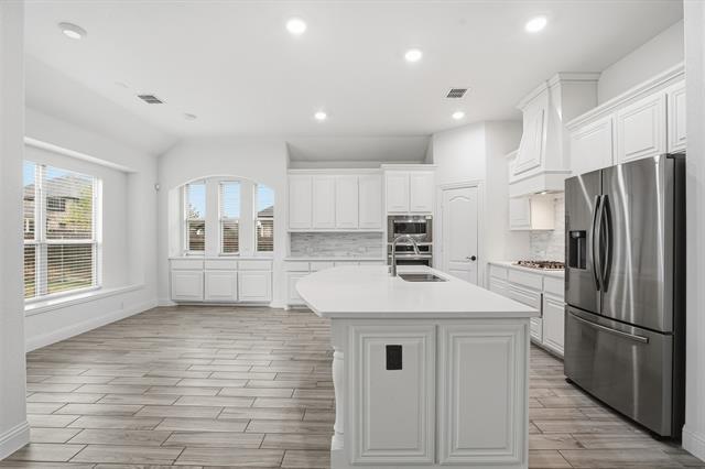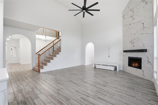 Experience Triple Diamond Ranch, a luxurious living community located in Mansfield! This gorgeous 4340sq ft, 6-bedroom, 5-bath private oasis awaits you! Eye-catching cedar garage doors and an 8-foot grand door welcome you inside. Head down the hallway to your deluxe kitchen and notice all the signature finishes, like 5-inch baseboards. The stunning separate dining room is framed by the staircase, which overlooks the main living area with floor-to-ceiling marble tile surrounding the gas-log fireplace. A plethora of windows line the main living area and continue into the kitchen nook area. Your deluxe kitchen includes a gas cooktop with a decorative hood, a walk-in pantry, a butler's pantry, and an oversized island. A true entertainer's dream! Upstairs, you have a flex-room outside the furnished and equipped media room! Upstairs, you also have an in-law suite, an additional bedroom, and a separate bathroom. Downstairs, next to the garage entry, is a bonus room by the laundry, which can be used for an office, exercise room, music room, craft room, or workshop. A propane grill is waiting for you on the private, covered, oversized porch, inviting you to grill and chill while watching the kids play in the large backyard. This beautiful community is situated off Main Street with easy access to major highways for work or leisure, with Joe Pool Lake, Six Flags over Texas, several major sports teams, shopping, museums, and other wonderful attractions nearby. Students will attend the highly regarded Mansfield ISD schools, rated A by the Texas Education Agency.