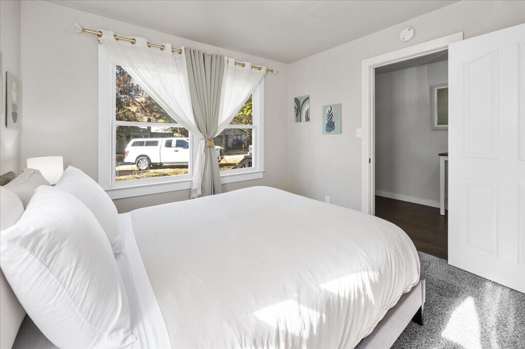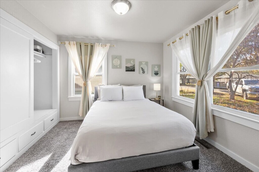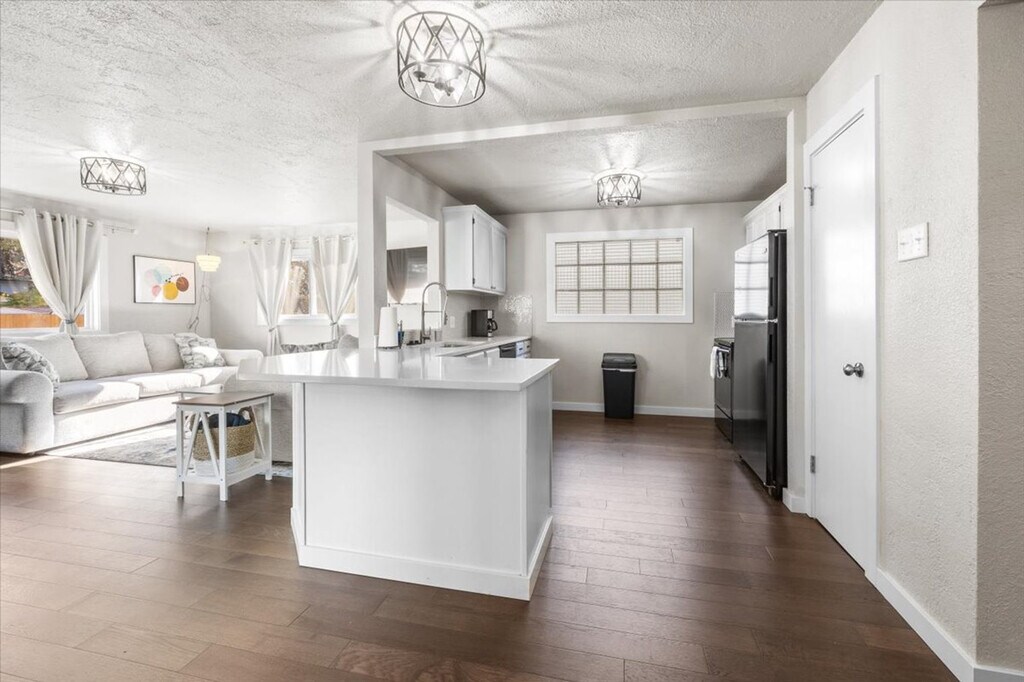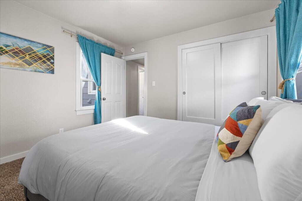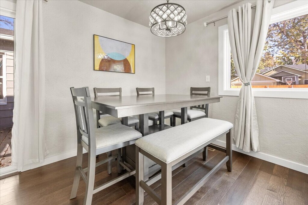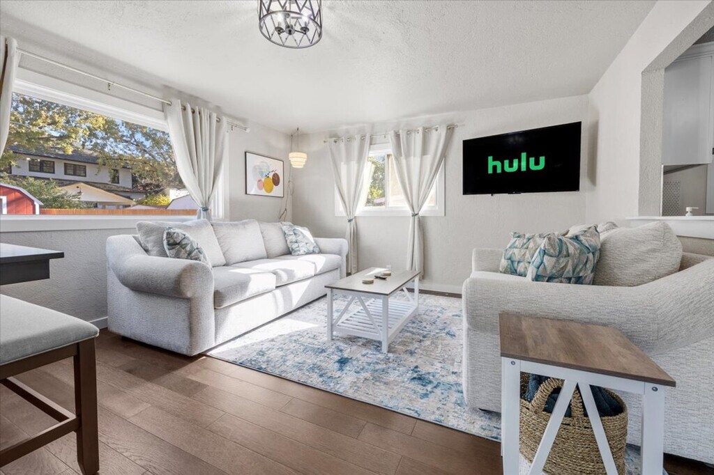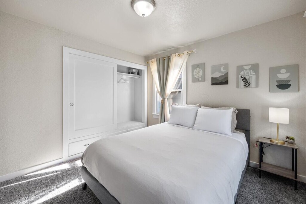Stay in this amazing, unique home in Boise's North End and feel at home. This 1,300 sq ft residence offers a spacious layout with smart TVs in the master bedroom, living room, and game room. Enjoy the convenience of fast Wi-Fi, ideal for working remotely, and a fully equipped kitchen. The property is professionally cleaned and sanitized, ensuring a pristine environment for your stay. Located just 5 minutes from BSU and downtown Boise, and with easy access to Bogus Basin, this home is perfectly situated for both work and leisure. The beautifully decorated space, designed by a local, features unique furnishings and a warm ambiance. The kitchen is fully loaded with stainless steel appliances, including a microwave, fridge, electric stove, and dishwasher, along with glasses, mugs, dishes, and cutlery. Enjoy the large private backyard with a fire pit and an awesome game room in the garage equipped with a ping pong table and smart TV. The master bedroom boasts a good-sized closet, and the in-house washer and dryer add to the convenience. Complimentary Wi-Fi and coffee are provided for your enjoyment. This home offers easy access to the amazing local reservoir and Boise River, making it a great spot for outdoor enthusiasts. With its prime location, you're just a short trip away from all the attractions Boise has to offer, including BSU and downtown Boise, both just 5 minutes away. The property allows for easy self-check-in via a secure door keypad. The home comfortably sleeps 6 with 1 king-size bed, 2 queen-size beds, and 2 good-sized couches in the living room for additional sleeping areas if needed. The home occupancy permits 8 people, and all beds come complete with fresh sheets changed after every guest. The fast Wi-Fi makes this home ideal for working remotely, ensuring you stay connected and productive during your stay.