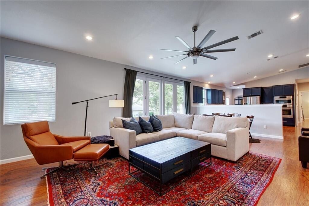 This beautiful home was completely renovated in 2017. The open concept floor plan features high vaulted ceilings, tons of natural light, and a stunning gourmet kitchen perfect for hosting and entertaining large gatherings. The bright and inviting primary suite contains a huge walk-in closet, gorgeous floor to ceiling windows with direct access to the covered patio. It also includes a private primary bathroom with pristine tile flooring, separate dual vanities, and a glass walk-in shower. Walk outside and enjoy the huge fenced-in yard. This is truly one of the highlights of the property! There is ample space to entertain, home addition, and so much more. It is the perfect space for kids and pets to run and the covered patio is great for relaxing and entertaining. This home has a shed for extra storage as well. This home is located minutes from the Domain amenities in the highly sought-after tech corridor of North Austin. Plus, near the Walnut Creek hike and bike trails - great for mountain biking. Kitchen fridge, 2 TVs, washer, dryer and laundry room fridge provided.