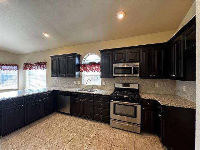 This beautiful spacious 4-bedroom, 2-bath home is ready for you! Step into a grand high-ceiling entrance that opens to a spacious living room with BRAND NEW LAMINATE FLOORING and a cozy fireplace, flowing seamlessly into the dining area and kitchen. The kitchen is equipped with stainless steel appliances, granite counters, and a pantry for extra storage. Three bedrooms and a full bath are conveniently located to the left, while the primary suite features laminate flooring, a walk-in closet, and a private en-suite bathroom. Enjoy evening on the covered back patio-perfect for entertaining and relaxing. Thie home nested within the highly sought-after KELLER ISD. Community pool and other amenities. Don't miss this opportunity-Call me today!