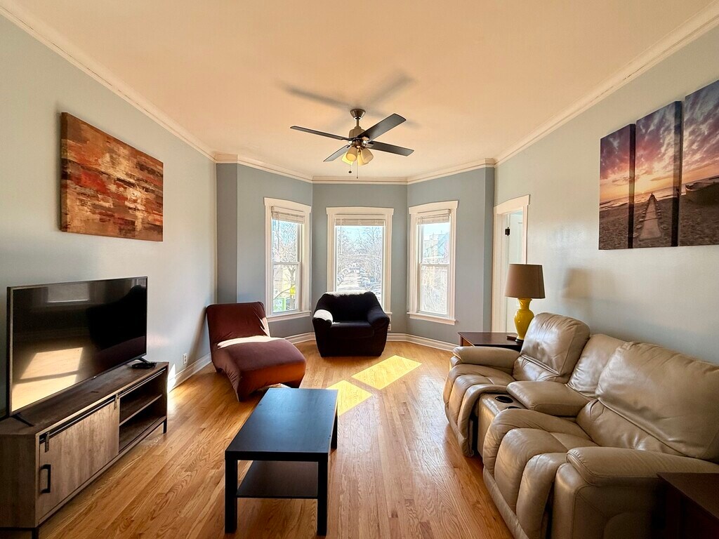 Spacious,sun-filled top-floor apartment in Logan Square! This well-designed home offers excellent living space all on one level. The large living room faces south on Fullerton,allowing beautiful natural light to pour in throughout the day. A huge eat-in kitchen provides plenty of room for dining and gathering,and includes a dishwasher for added convenience. The three bedrooms are efficiently sized,offering flexibility for sleeping arrangements,a home office,or additional storage. The bathroom has been recently updated with clean,modern finishes. At the rear of the home,an enclosed porch offers valuable bonus space-ideal for a home office,sitting area,or extra storage. Additional features include central heat and A/C,laundry in the basement,and plenty of street parking nearby. A fantastic opportunity for those seeking bright living space,functionality,and charm in a prime Logan Square location. MLS# MRD12576248 Based on information submitted to the MLS GRID as of [see last changed date above]. All data is obtained from various sources and may not have been verified by broker or MLS GRID. Supplied Open House Information is subject to change without notice. All information should be independently reviewed and verified for accuracy. Properties may or may not be listed by the office/agent presenting the information. Some IDX listings have been excluded from this website. Prices displayed on all Sold listings are the Last Known Listing Price and may not be the actual selling price.