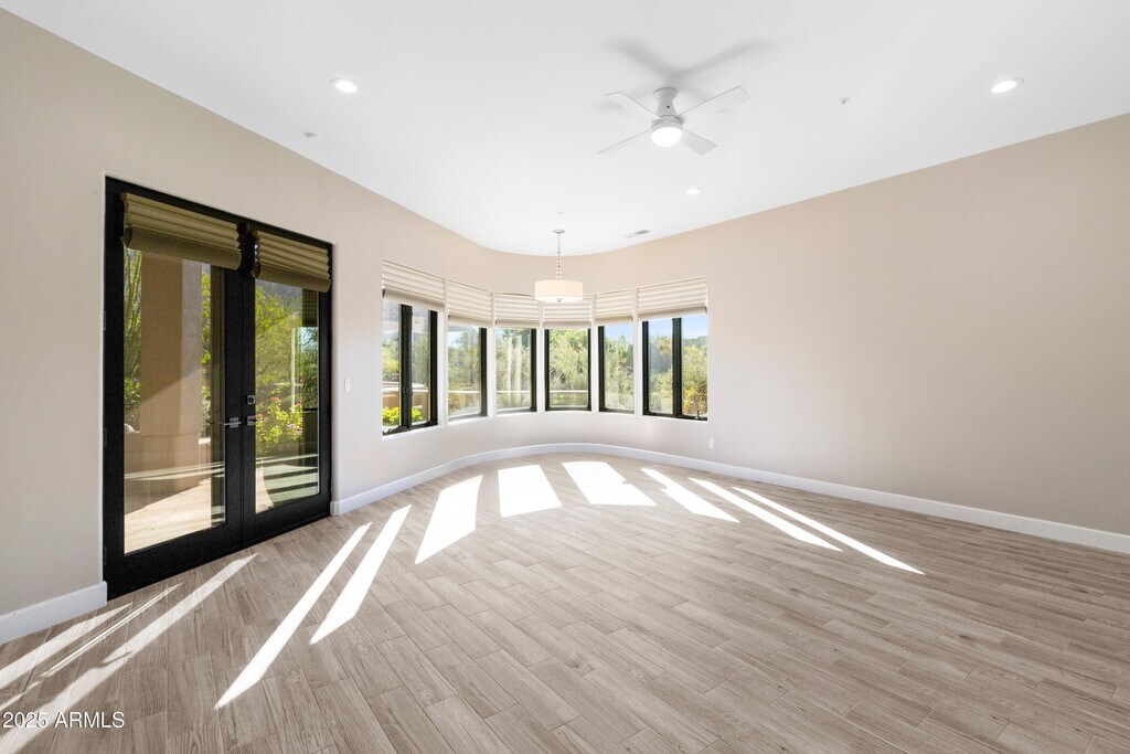 Luxury Rental in Troon Fairways with Panoramic Views! This beautifully remodeled Spanish Contemporary custom home sits on a quiet cul-de-sac in Troon Fairways,offering peace,privacy,and stunning views from every angle. With a private courtyard overlooking Pinnacle Peak and a backyard framed by Troon,this home captures the best of desert living. Inside,you'll find an open,light-filled floor plan with 4 bedrooms plus an office and 4.5 baths,including a secondary master suite with a spacious bathroom. The detached casita includes a kitchenette,full bath,and its own view deck. Perfect for guests or an exclusive office space. The spacious kitchen features newer gas range,48'' built-in fridge,quartz counters,a walk-in pantry and wine fridge. A unique pass-through window opens to the patio for easy entertaining. The outdoor misting system enhances your outdoor living,along with a pool and spa,built-in BBQ,and outdoor fireplace. Entire home is equipped with smart home features such as wifi enabled thermostats,doorbell and Aqua-link for easy control of the pool and spa features. The home also comes with wall mounted flat screen tvs for an added rental convenience. Set on a 37,000 sq ft lot,this home offers serenity and convenience just minutes from North Scottsdale's best dining,golf,biking and hiking trails. 9+ month lease preferred. Offered unfurnished. Pets allowed with landlord approval.