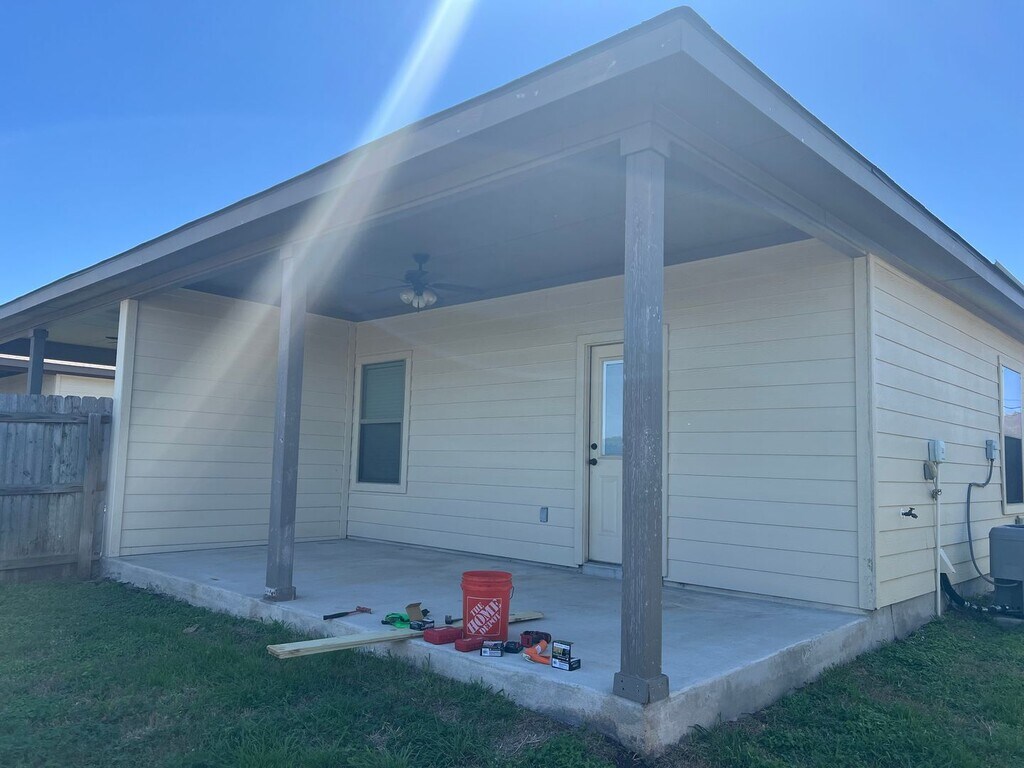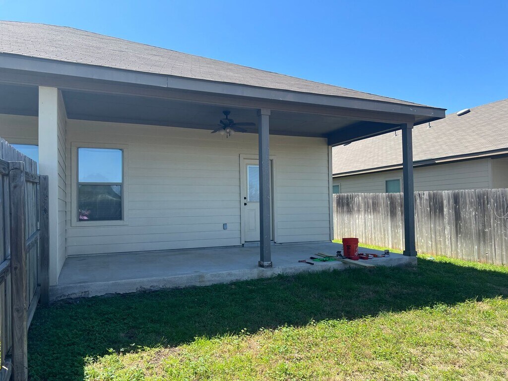 Great 3-bd/2-ba duplex located in NBTX! Single story, 1,370 square feet of modern living space, contemporary open-concept design and convenient access to local amenities. This home features 11-foot ceilings in the living area and 10-foot ceilings throughout the rest of the home, stained concrete flooring throughout (no carpet) and granite countertops in both the kitchen and bathrooms. Home also has a fenced backyard with large covered patio and a 2-car garage. Located in a in a prime location with quick access to IH-35 and IH-10, minutes from Fischer Park, downtown New Braunfels, various local shopping destinations and within walking distance to elementary schools. This home won't be available long. Pets allowed up to 40 lb max weight. Price is 1395 for 15 month lease, 1450 if you only need a year. Please call or text for additional info, screening criteria, and to set up a tour.
