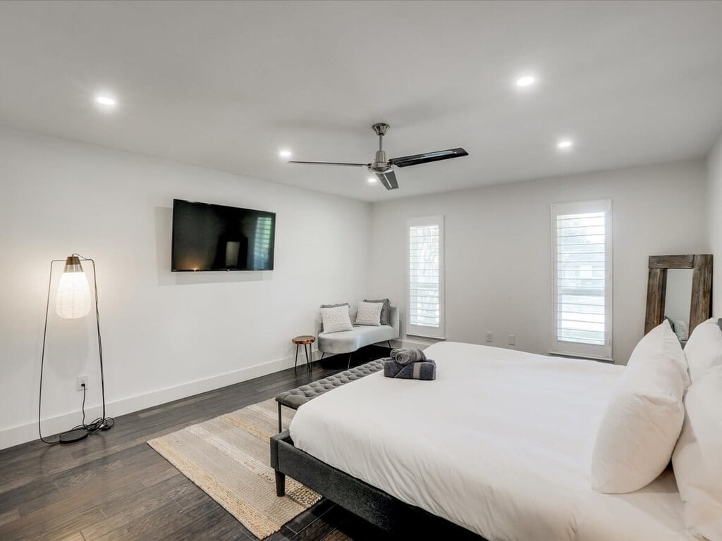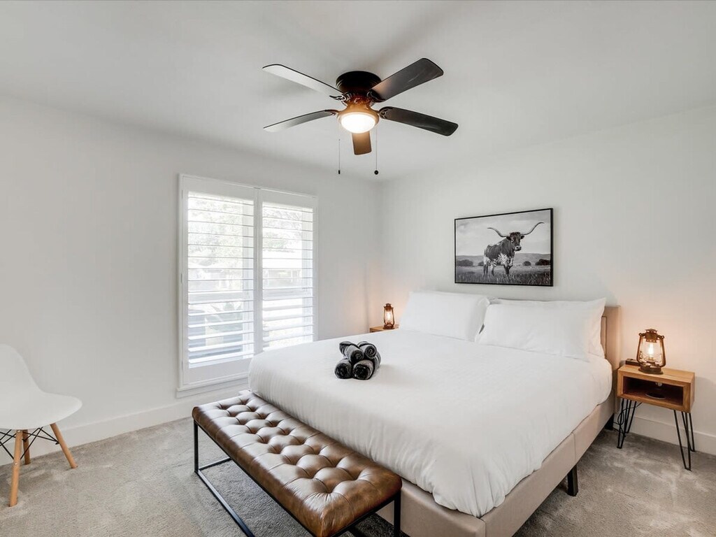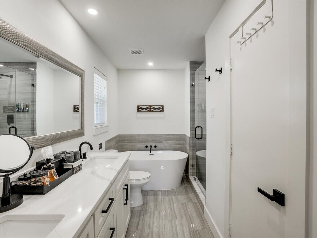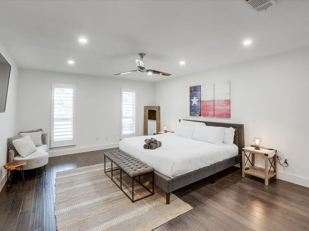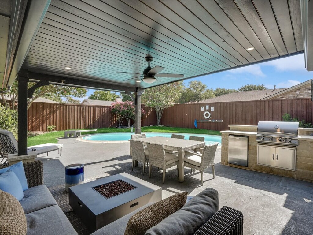 Wow! That's what you'll say when you see this gorgeous, spacious, and tastefully furnished home. Newly renovated with modern finishes throughout, this stunning place features a Texas-sized lot, a backyard oasis with a swimming pool, and a dream kitchen that's sure to impress. With four bedrooms and two bathrooms, this home offers a fully equipped chef's kitchen, a patio, and a grill in the backyard for easy meals, and an outdoor swimming pool. Located in the affluent neighborhood of Caddo Park, this 4-bedroom, 2-bath gem is a must-see. From a top-of-the-line dream kitchen to a backyard oasis, this home caters to both short-term and medium-term stays, making it an excellent choice for corporate housing needs. Whether you're temporarily displaced or require accommodations for your team during an extended project, this property provides a welcoming and comfortable "home away from home" experience. The kitchen is fully equipped with stainless steel appliances, including a fridge, freezer, stove, oven, dishwasher, and microwave. It also includes all basic cooking essentials, a breakfast table, and a breakfast bar with seating for 12. The dining room features a dining table with seat settings for 6+, curated décor, and designer accents for a restaurant-like feel. The living room offers an oversized L-shape couch, a coffee table, a designer rug, aesthetic accents, a flat-screen TV, and high-speed Wi-Fi, all within an open-concept layout for easy socializing. Free parking is included with your stay, with options to park in the garage, on the driveway, or on neighborhood streets. Complimentary laundry is also available with a fully equipped washer and dryer set. Pets are welcome with a non-refundable pet fee of $150 per pet, with a maximum of 2 pets per stay. An additional nightly rate applies for more than 6 guests, with a $29/night fee for each additional guest. Come experience why people love Plano! Known as the most affluent city in the US, Plano offers a high quality of life and is a popular destination for business travelers in the Dallas area. Enjoy nearby attractions such as The Heritage Farmstead Museum, Downtown Plano, The Interurban Railway Museum, The Shops at Legacy, and Arbor Hills Nature Preserve, all within a short drive. For those interested in exploring Dallas, attractions like Adventure Landing Dallas, Vitruvian Park, and Galleria Dallas are also nearby. Smoking of any type is not allowed, with violations subject to a $450 fine plus the cost to clean, deodorize, and repair damages. Check-in is at 4pm and checkout is at 10am. No parties or events are allowed. Pets should be discussed in advance, and only house-trained pets are allowed. Pet cleaning fees apply. A noise alert device is installed to monitor decibel levels and ensure compliance with local noise ordinances. Rest assured, the device does not record or store sound data. The property also features an outdoor security camera facing the backyard entry and covering some of the pool area, ensuring guest safety without infringing on privacy. The fireplace is currently inoperable, and guests are encouraged to bring their own pool towels if desired. All smart TVs are equipped with streaming apps like Netflix, Amazon, and YouTube, and guests are welcome to log in with personal accounts. The office provides a dedicated workspace with a desk, chair, and lighting, and includes a sofa bed for additional sleeping space. This room offers direct access to the backyard, making it a versatile space for both work and relaxation. Registration Number: STR-2605-020 [SI]