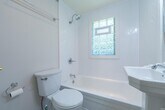 Available now! One dog permitted...home includes fenced yard. Utilities included. This beautifully remodeled 2-bedroom, 1-bath gem perfectly blends charm with modern convenience. Step inside to find gleaming refinished hardwood floors and a bright, open living space with vaulted ceilings that create an airy, spacious feel. A unique loft space above the living room—accessed by a sliding ladder—adds a cozy, versatile bonus area, perfect for a reading nook, extra storage, or even a sleeping space. Each room is equipped with its own efficient mini-split system, ensuring personalized comfort year-round. The kitchen boasts brand-new appliances, chic cabinetry, and stylish finishes, ready for everyday living or entertaining guests. The full bath has also been tastefully updated, and every detail throughout the home reflects thoughtful craftsmanship. Outside, enjoy a fully fenced yard. Added bonus - there are cherry, peach, crabapple, Japanese maple, birch and oak trees on the property! A one-car garage provides convenience and additional storage space. Tenant is responsible for utilities.