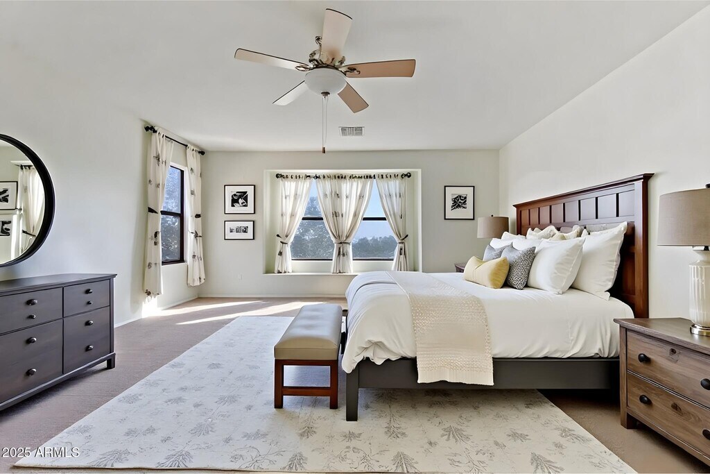 Beautifully maintained 4 bed,2.5 bath home in Desert Oasis with owned solar and a spacious backyard built for Arizona living. Enjoy a brand new deck perfect for BBQs,mature trees,and peaceful mountain views. Inside,the gourmet kitchen features granite counters,a center island with breakfast bar,double ovens,a gas cooktop,and a walk-in pantry. The open layout offers bright living and dining areas,plus a large primary suite with dual sinks,soaking tub,and separate shower. Close to a great local park,shopping,and dining. Move-in ready and full of potential.