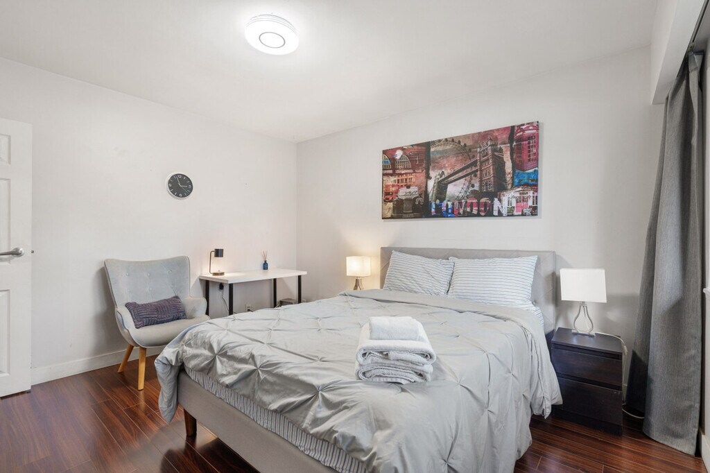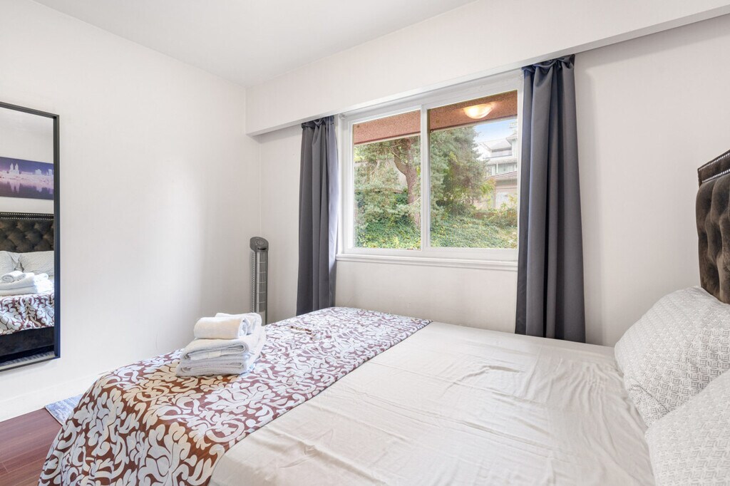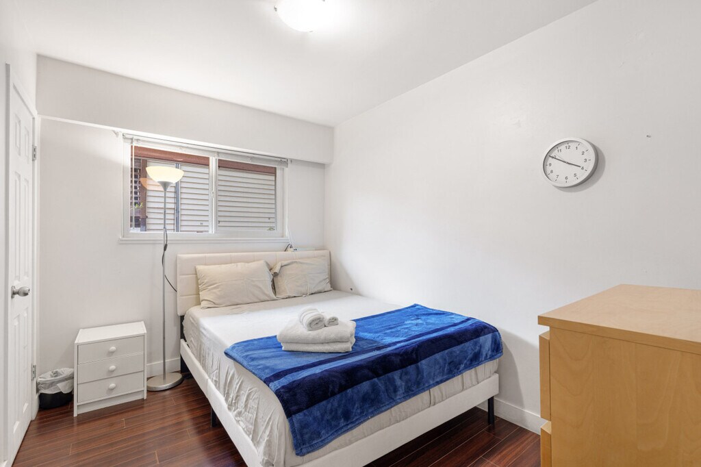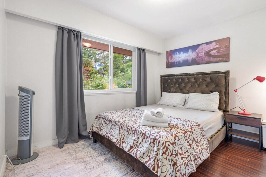 Bright and spacious 3-bedroom basement suite, 1-bath home in East Vancouver with a private entrance and access to the backyard. Ideal for extended stays and comfortably accommodating up to 6 guests. The home features a modern kitchen, dining area, and a cozy living space plus free shared laundry on site. The main house is upstairs, so quiet hours must be observed to respect the separate basement suite below. The TV is currently out of service and is not listed as an amenity. Street parking only. Strictly no smoking anywhere on the property and no parties or unauthorized guests are allowed. Shared laundry facilities are available for guest use at no cost. [SI]
