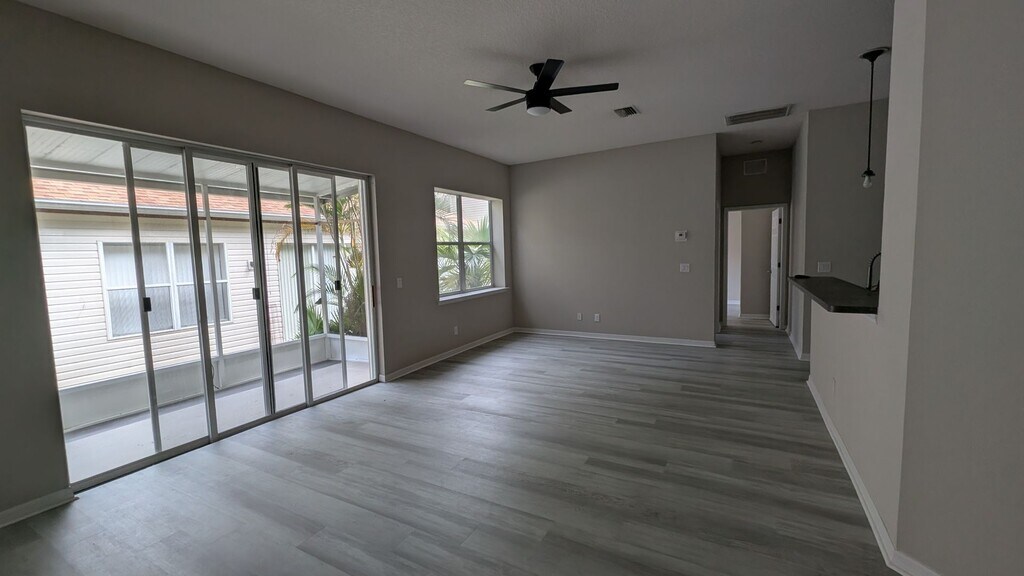 Beautiful 3 Bedroom, 2 bathroom home in the sought-after Fiddlers Cove community in Lutz. Enjoy the open floor plan with just over 1,500 square feet of thoughtfully designed living space highlighted by vaulted ceilings and vinyl plank flooring throughout. The split bedroom layout ensures privacy, with a spacious primary suite that includes a walk-in closet and step-in shower, while the two guest bedrooms provide flexibility for family, visitors or a home office. The updated kitchen features modern appliances and cabinetry. The screened in lanai is the perfect spot for morning coffee or evening relaxation. Residents of the Fiddlers Cove can also enjoy the community pool, clubhouse and well-maintained grounds, with exterior upkeep handled by the HOA. Located off of Livingston Ave. and near Bruce B Downs, you are centrally located just minutes from I-275 for an easy commute to downtown Tampa or a quick drive to Wesley Chapel or New Tampa to enjoy local dining and shopping. Apply online at Applications are $75/per adult. Text to set-up a showing while it is still available!