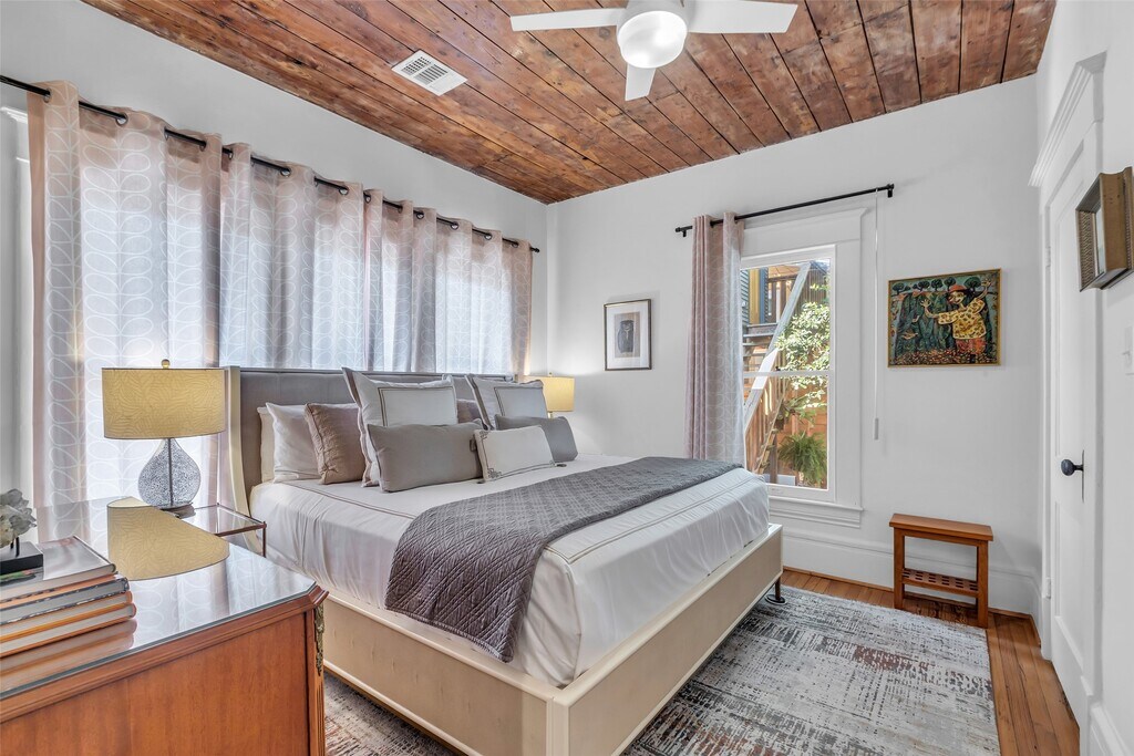 Charming Montrose Craftsman bungalow located on a picturesque block lined w/majestic oaks. The inviting covered front porch welcomes you to the 2-bed,1.5-bath 1339’ home filled w/stunning original woodwork,exposed shiplap walls & gleaming hardwood floors. Spacious living room flows seamlessly to the dining area,perfect for relaxing or entertaining. Fantastic island kitchen with stainless appliances,site-built cabinetry including enormous panty,and sun filled breakfast room. Thoughtful updates throughout,including updated plumbing,electrical,& HVAC system & ducting. Fully fenced 5,000 SF lot offers amazing New Orleans style backyard patio perfect for outdoor living. Enjoy unbeatable walkability to Montrose’s vibrant dining,art,& nightlife. One mile to Buffalo Bayou’s hike & bike trails,& just a few miles to Downtown,Museum District,and Med Center areas. Walkable to over 24 restaurants. Just Schedule your showing today & make this timeless retreat your own. Truly a MUST SEE! MLS# 85560167