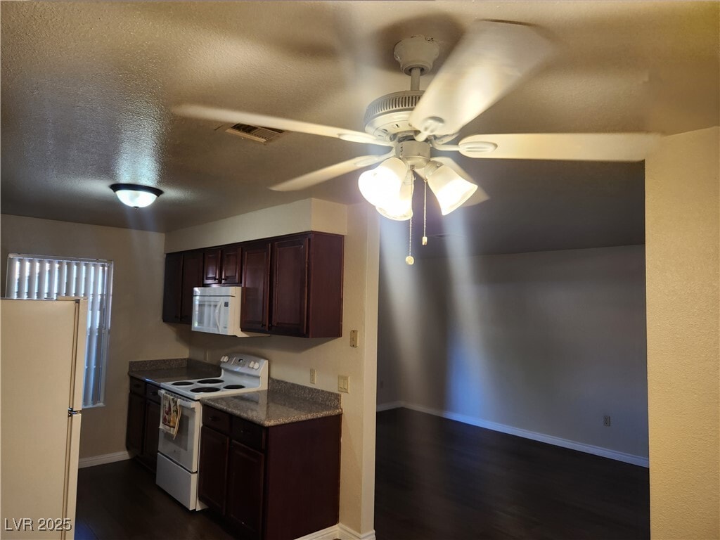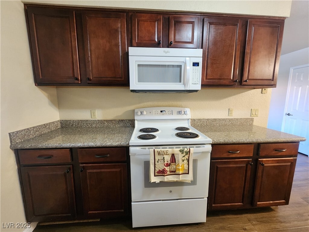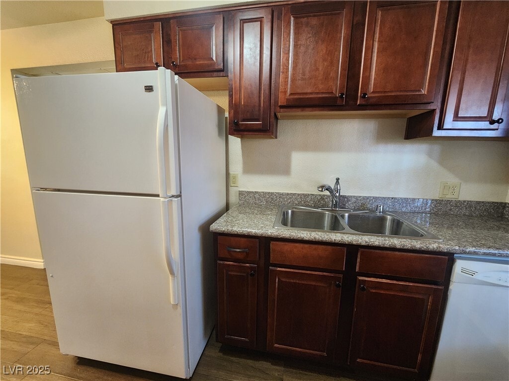 Close to all Summerlin amenities, this charming first-floor unit is move-in ready with thoughtful upgrades throughout. Premium vinyl plank flooring & fresh paint. Granite kitchen counters w/ ample cabinets & counter space. All appliances: built-in microwave, stove, dishwasher. Cozy family room w/slider to a private covered patio. Updated bathroom vanity, newer faucets, garbage disposal, and water heater. AC replaced in 2023. New front door with white iron security gate. Washer & dryer on enclosed private patio.Ceiling fan in dining area. Primary suite with large walk-in closet plus additional mirrored door closet. One covered carport space conveniently located next to the unit. Community pool & spa. Walking distance to shopping, Boca Park, restaurants, and recreation.Nearby bus stop for easy commuting, just 20 minutes to the Las Vegas Strip and airport. This updated condo combines comfort, convenience, and a great Summerlin location—perfect for enjoying the best of Las Vegas living!